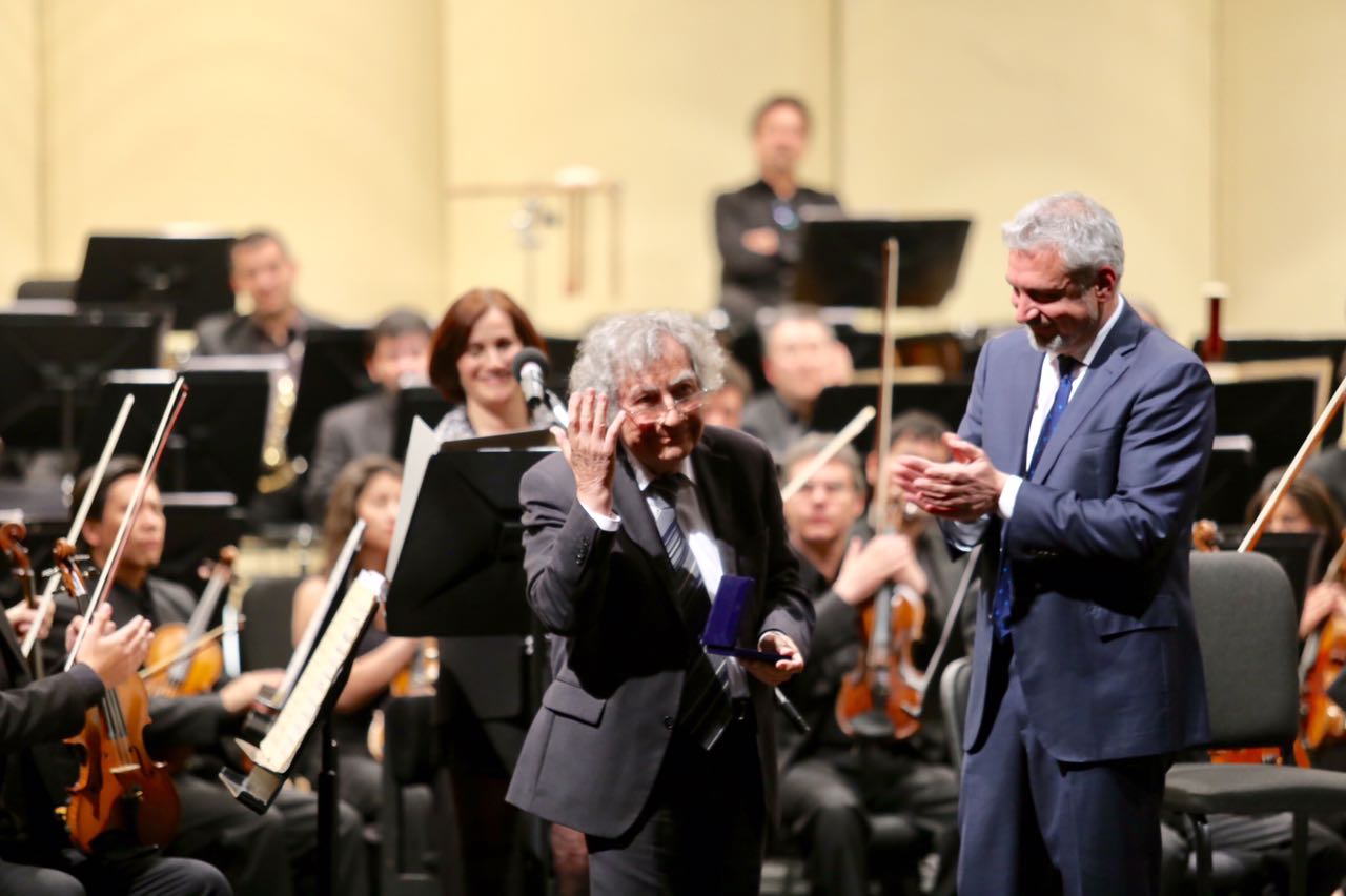 Por su dedicación al quehacer cultural y difusión de la música nacional, hoy sábado 09 de septiembre, en el marco del Festival Pedro Humberto Allende, el Ministro de Cultura Ernesto Ottone entregó en el Teatro de la Universidad de Chile la Orden al Mérito Artístico y Cultural Pablo Neruda al compositor chileno Juan Allende Blin.