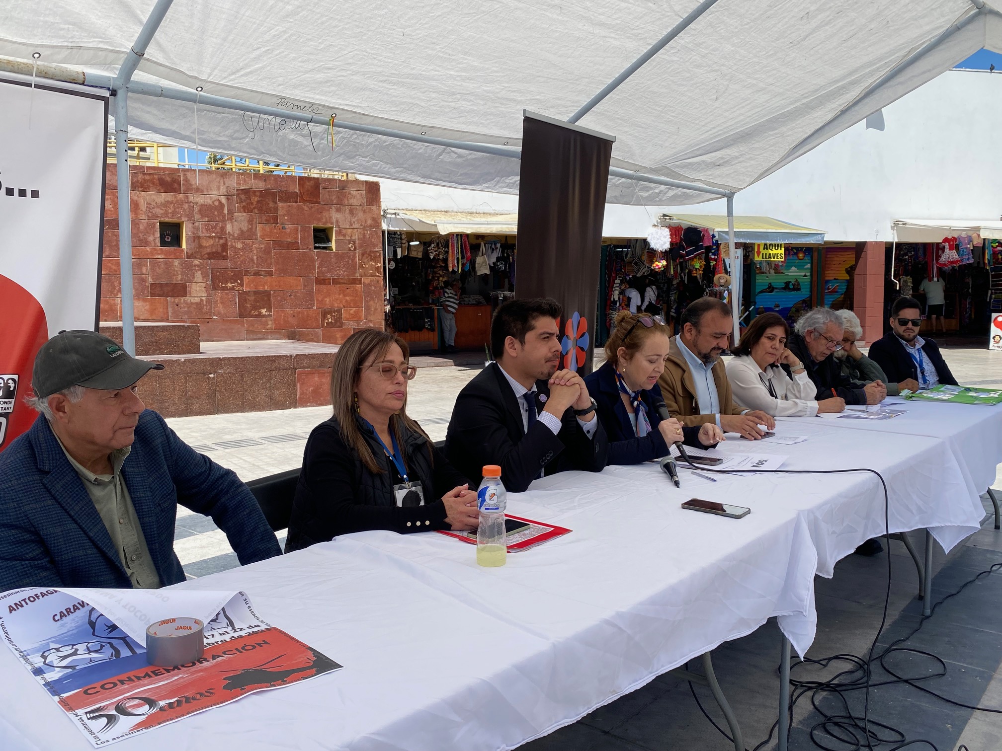 Una variada y amplia programación para conmemorar los 50 años del Golpe de Estado compartieron hoy representantes de diversas agrupaciones de Memoria y Derechos Humanos y autoridades regionales encabezadas por la Delegada Presidencial Regional, Karen Behrens y seremi de las Culturas, las Artes y el Patrimonio, Claudio Lagos Gutiérrez, quienes se reunieron en la explanada de plaza Sotomayor de la ciudad de Antofagasta para entregar detalles de las actividades que se realizarán en el marco de esta importante fecha.
