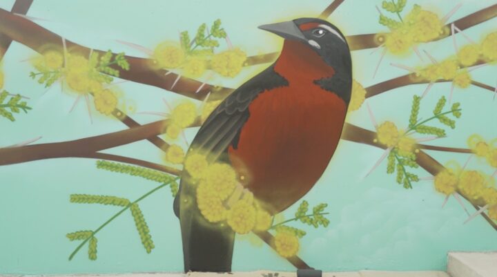 El artista local Luis Cáceres (alias Artek) plasmó en el recinto el trabajo de muralismo “Loica y Espino”, obra que busca concientizar y educar sobre la naturaleza local.