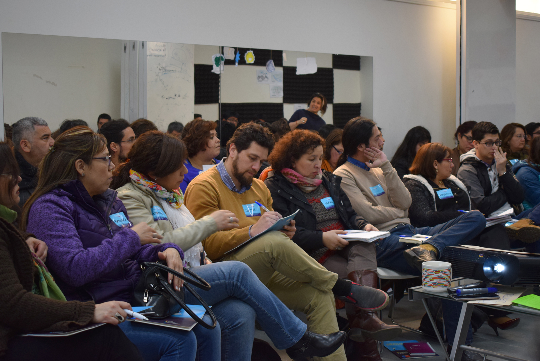 Asistieron representantes de distintas instituciones públicas y privadas: Seremi de Educación, Sename, Programa Familias de Padre Las Casas, Fundación Superación de la Pobreza, Fundación Tierra de Esperanza, Escuela Especial Ñielol, Colegio Emprender Temuco, Colegio San Francisco de Temuco, Universidad Católica, así como también facilitadores de Cecrea, artistas y educadores del programa Acciona, entre otros.
