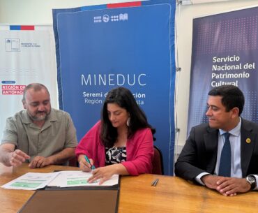 Para promover e impulsar la implementación de la Política de Educación Patrimonial, PEP, en la región de Antofagasta, la seremi de las Culturas, las Artes y el Patrimonio, Carla Julio Oyola, su par de Educación, Alonso Fernández Allende y el director regional del Servicio Nacional del Patrimonio Cultural, Claudio Lagos Gutiérrez, firmaron recientemente el Plan de Acción Regional de Educación Patrimonial 2025-2029.