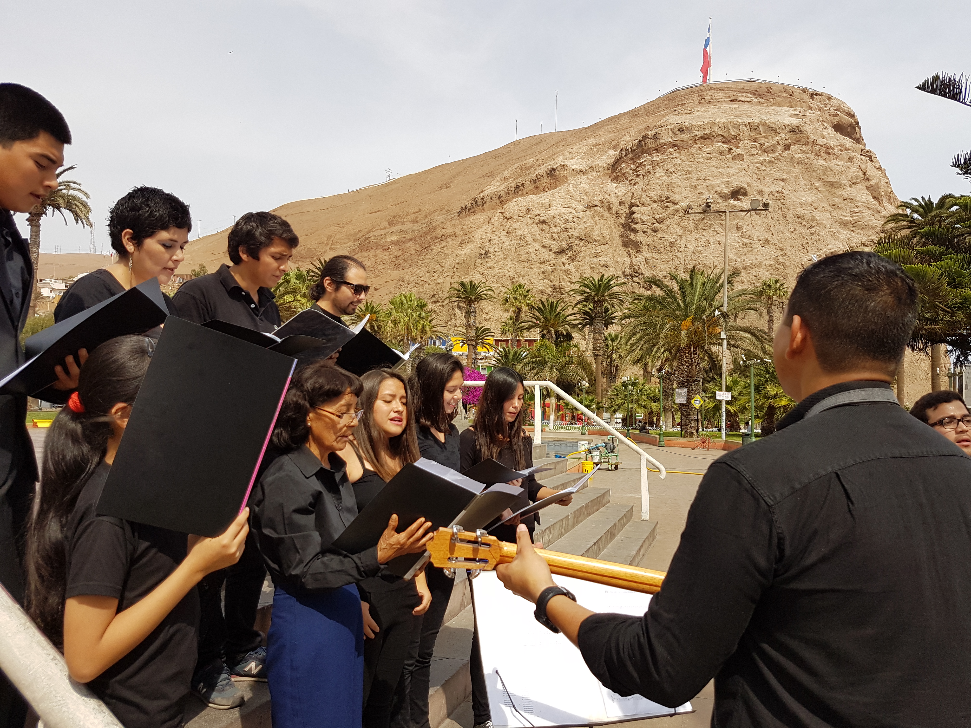 En la ciudad de Arica, la actividad, organizada por el Consejo de la Cultura, se llevó a cabo en el Parque Vicuña Mackenna y estuvo a cargo del coro del Conservatorio Alcántara, el cual fue filmado y transmitido en directo a todo el país a través del canal www.ondamedia.cl.