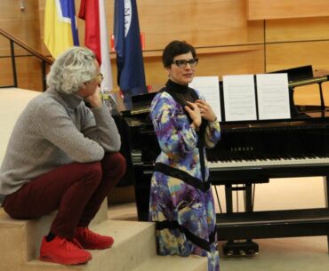 En la charla formativa intervino además la mezzosoprano Evelyn Ramírez Muñoz, quien interpretó un extracto de “Patagonia”, acompañada del pianista regional Nicolás Prieto Bahamondez.