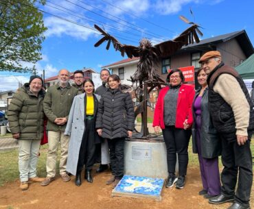La ministra de las Culturas fue la invitada especial a la inauguración de la escultura pública, ubicada en una plazuela frente al acceso al hospital base de Valdivia. La obra en metal “Danza con el viento” fue creada por el artista boliviano Jaime López en el marco del XIX Simposio Internacional de Escultura de Valdivia, organizado por la CCM. En el lugar también se instaló una baldosa de mosaicos creada por los vecinos en el taller dictado en el barrio por el Colectivo Sur, Memoria y Dignidad, a los cuales la ministra hizo entrega de un diploma de participación.