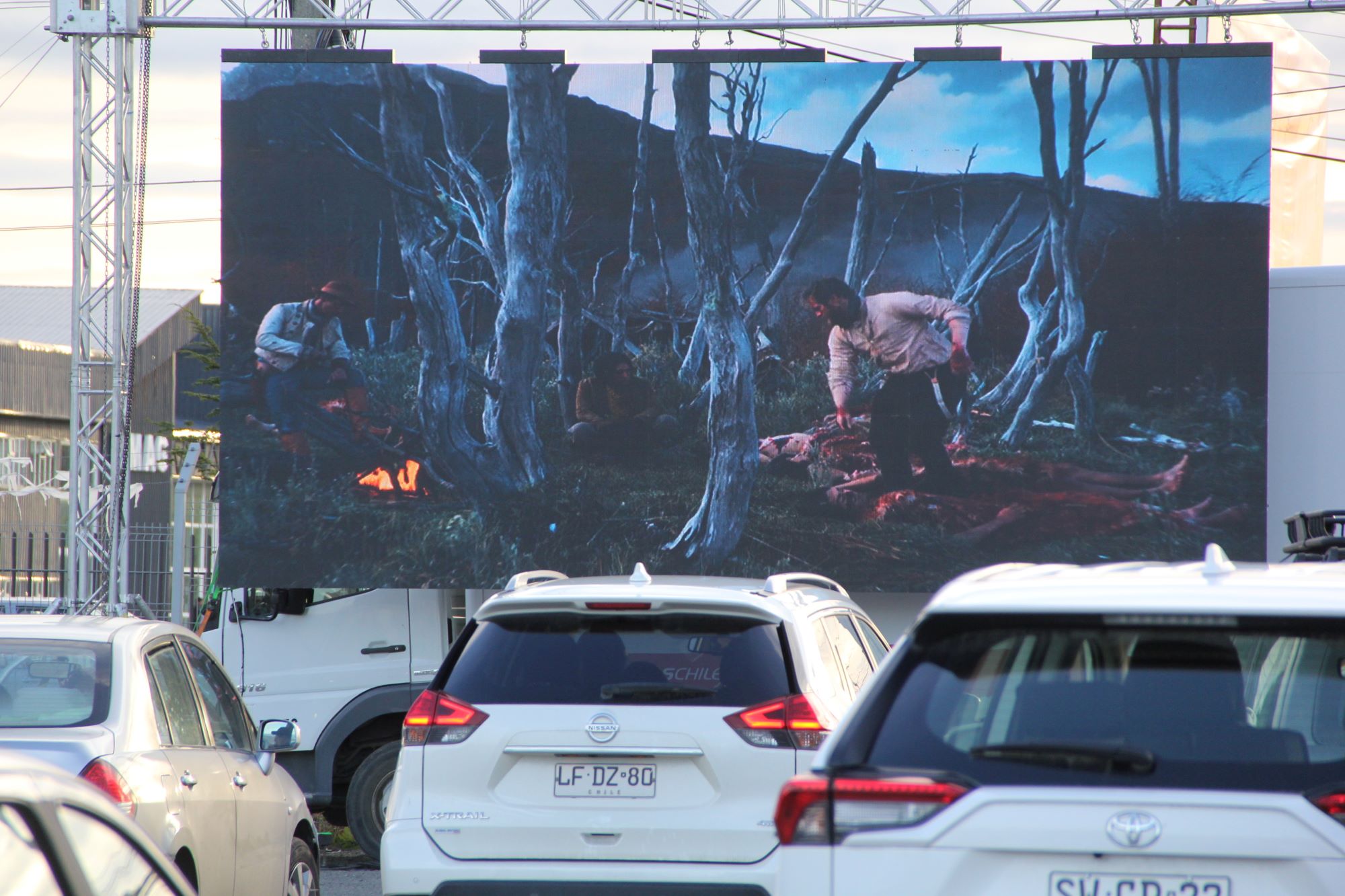 La novedosa propuesta se efectuó en los estacionamientos del recinto comercial Zona Austral. Una pantalla gigante y el sonido transmitido a los vehículos, mediante Frecuencia Modulada (FM) de radio, recrearon el nostálgico formato que surgió en los años 50 y que esta vez exhibió la película nacional “Los Colonos”, de Felipe Gálvez.