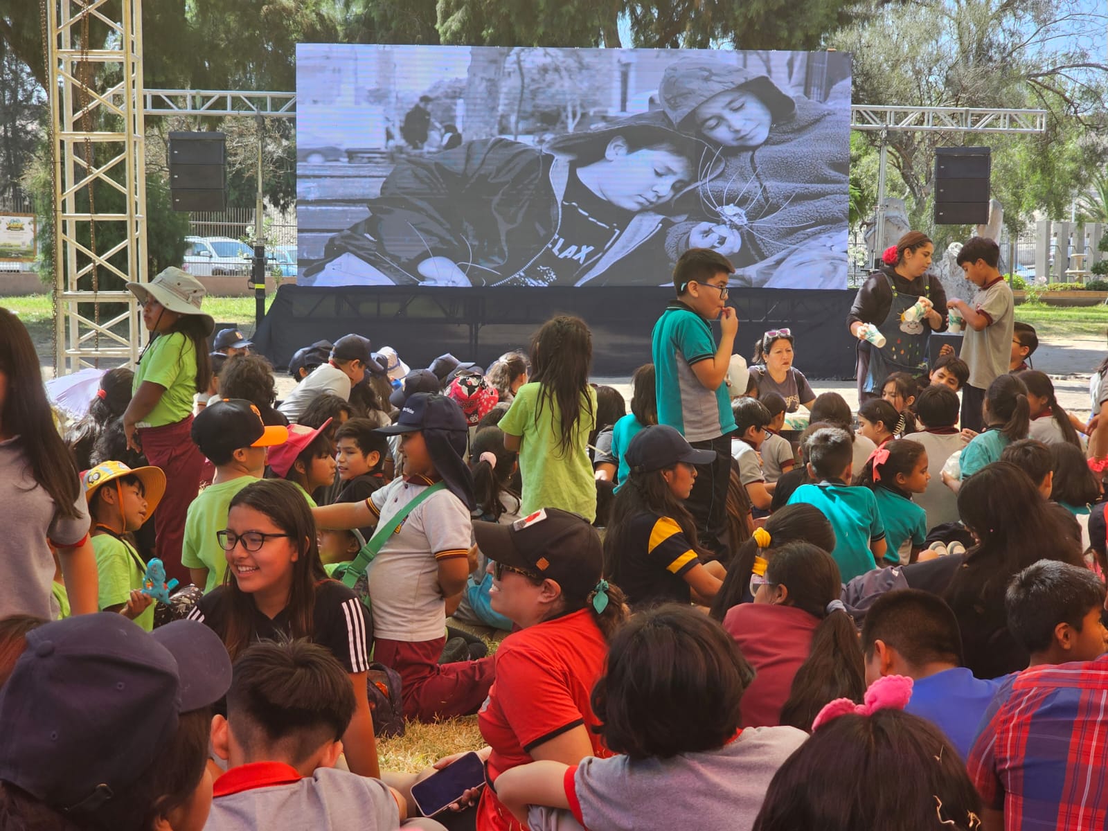 Más de 900 niños y niñas de establecimientos educacionales de Arica se dieron cita en el Parque Centenario para conmemorar el Día del Cine Chileno. En la ocasión, los estudiantes pudieron disfrutar de proyecciones audiovisuales de factura local y un cortometraje de la vida de Violeta Parra.