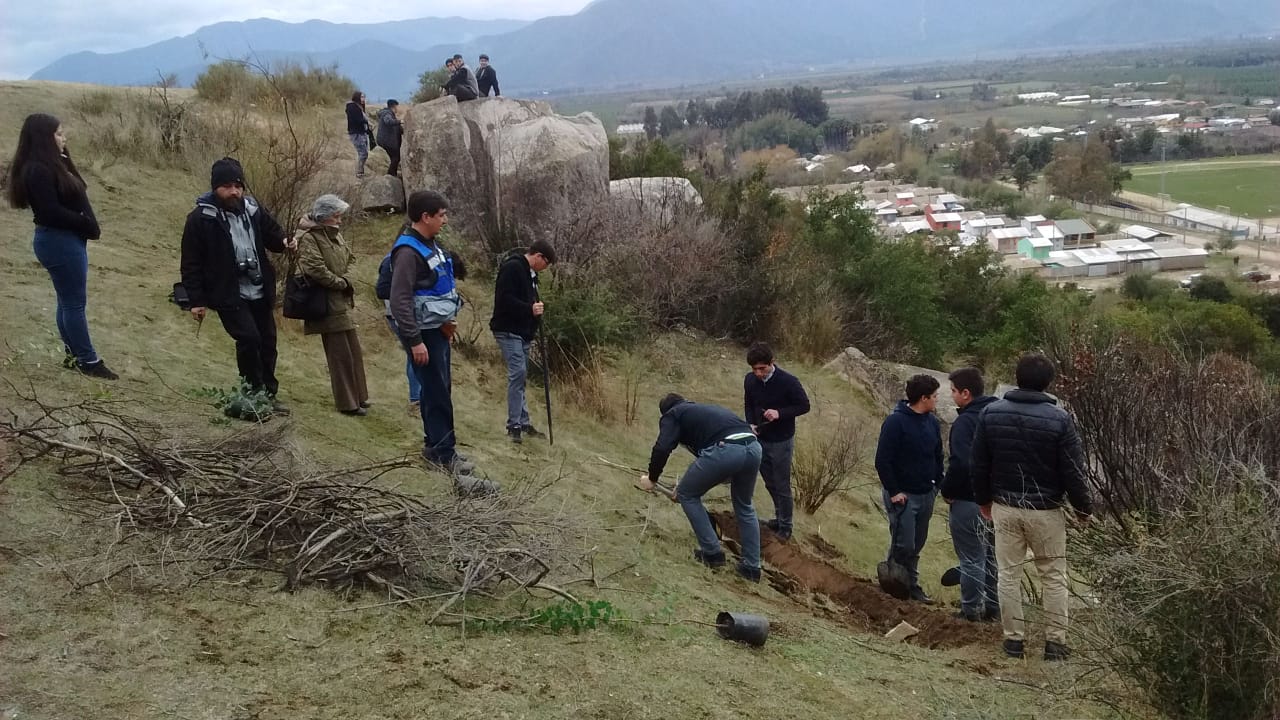 Durante la tarde se realizó una “parti – ruta”, instancia en terreno, donde niños, niñas y vecinos se juntaron en el cerro, para realizar de forma práctica una recuperación de suelos con fajina, y se plantaron 5 quillayes.