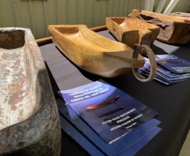 Por su parte, Víctor Hugo Bustamante presentó “Travesía de wampos ancestrales en la cuenca del lago Ranco”, una serie de esculturas inspiradas en estas embarcaciones mapuche, las que creó a partir de maderas muertas rescatadas de ríos y lagos. “Ha sido para mí un orgullo estar representando a la región con este proyecto e inspirarme en los wampos que usaron nuestros antepasados en el lago Gris, en el Maihue, para movilizarse, para trasladar animales”, comentó, destacando en sus obras el uso de madera de laurel y el trabajo de réplica a escala, además de la utilización de herramientas tradicionales como la suela, el machiwe y el hacha.