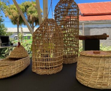 La cultora detalló algunos de los productos presentados, que define mayormente como utilitarios para el uso en el hogar: “Tenemos las lámparas de ñocha, que es parte de la decoración, pero también los jarrones, las hueveras y el balai que usaban los antiguos mapuches para soplar el trigo y que todavía se utiliza para hacer el muday y el catuto. Tenemos también el típico canasto que se usaba para ir a buscar verduras en el campo; la panera, la bandeja, la frutera y las pilhuas, que es una malla que se está volviendo a usar como una forma de cuidar el medio ambiente y hacer que el nylon desaparezca”.