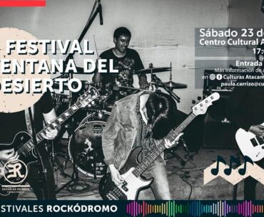 Ventana del Desierto se realizará en el Centro Cultural de Atacama (Avenida Manuel Antonio Matta #260 Copiapó) el sábado 23 de julio desde las 17.00 horas, y contará con diez elencos regionales, todos participantes destacados del proceso de formación Escuelas de Rock realizado durante el primer semestre en Atacama.