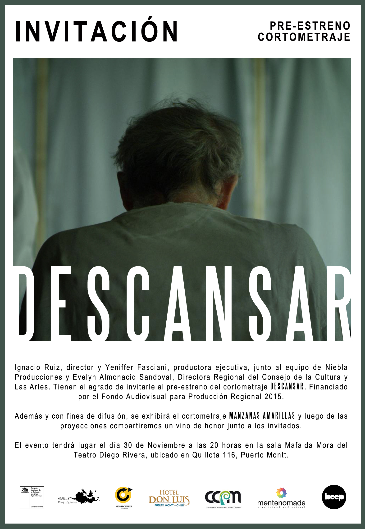 Al igual que el cortometraje anterior de Ruiz, “Manzanas Amarillas”, el que fue nominado a los premios Pedro Sienna de la industria Cinematográfica Chilena el 2016, “Descansar” tendrá su primera proyección en Puerto Montt. Cabe destacar que Ruiz también fue nominado en estos mismos reconocimientos, este 2017 en su calidad de Director de Arte de la película “El Primero de la Familia”.