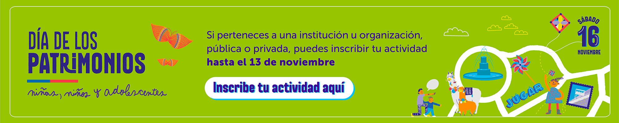 Hasta el miércoles 13 de noviembre, a las 23:59 horas, estarán abiertas las inscripciones para que organizaciones e instituciones de todo el país registren sus actividades lúdicas y educativas, y formen parte de la cartelera digital del Día de los Patrimonios de Niñas, Niños y Adolescentes, que estará disponible en https://www.diadelospatrimonios.cl/.
