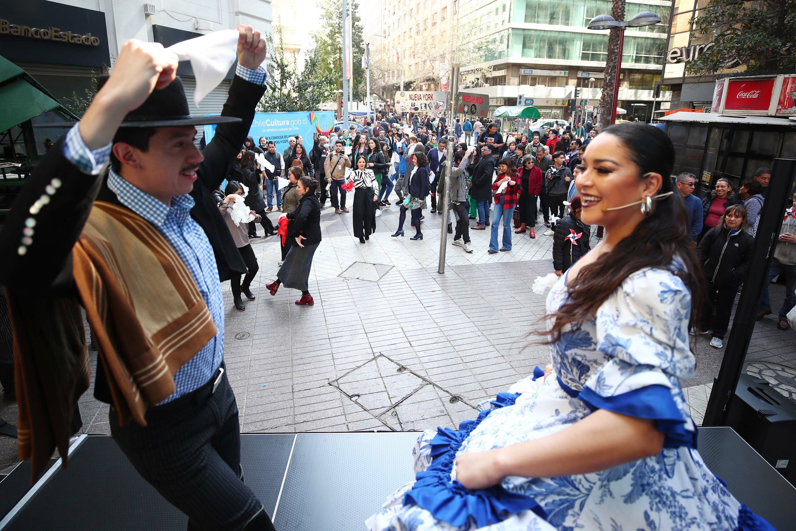 El ambiente de Fiestas Patrias se respira en el aire y esta mañana sobre todo, en Paseo Ahumada con calle Nueva York. Ahí Chile Cultura, la plataforma web del Ministerio de las Culturas, las Artes y el Patrimonio, presentó su campaña como la cartera cultural más completa del país, con una variedad de actividades -en su mayoría gratuitas- que se desarrollan en espacios públicos y privados de las 16 regiones.