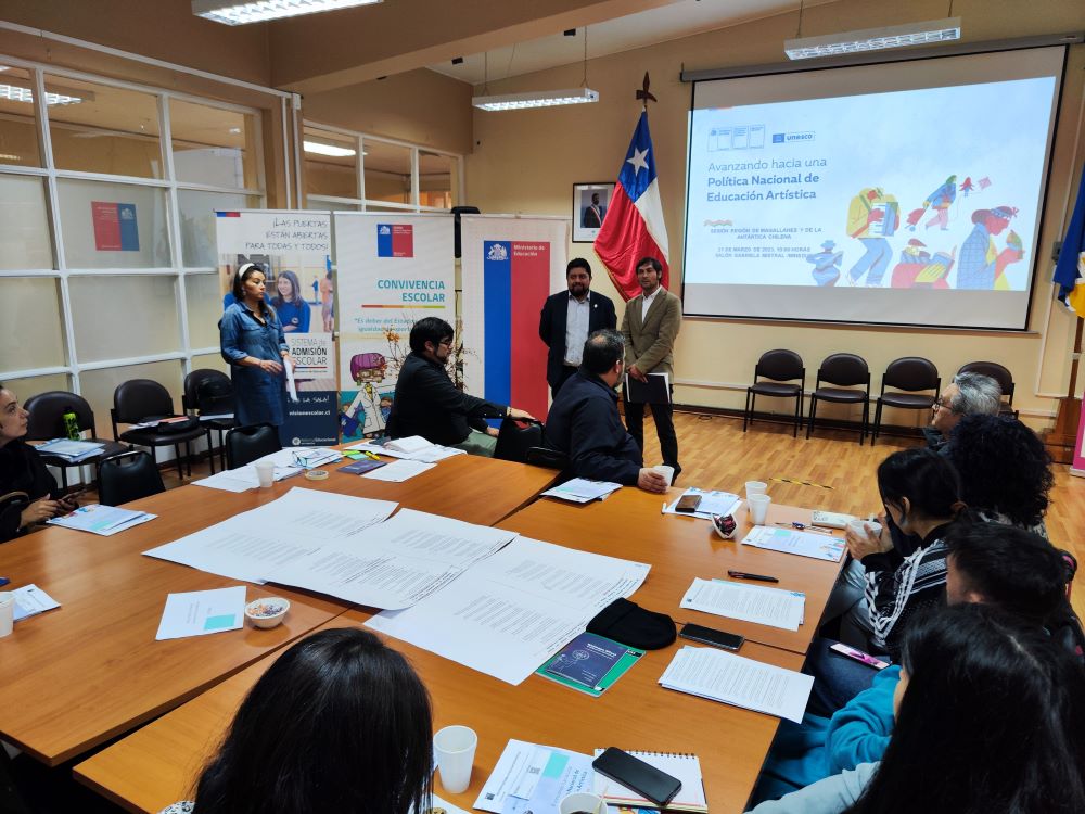 Artistas, gestores culturales, agentes de la educación e integrantes de la Mesa Regional de Educación Artística se reunieron la mañana de este martes en el salón Gabriela Mistral de la Secretaría de Educación, en la ciudad de Punta Arenas, para comenzar la etapa de sistematización y levantamiento de propuestas que serán consideradas en el diseño nacional de la herramienta a la que darán cuerpo y vida los ministerios de Educación y de las Culturas, las Artes y el Patrimonio, según el convenio de colaboración firmado el año 2022.