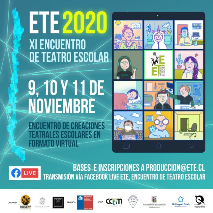 Una versión virtual pero con la misma estructura de años anteriores desarrollará el Encuentro de Teatro Escolar, el cual ya lanzó la convocatoria para que profesores y profesoras inscriban a sus grupos de estudiantes y presenten sus producciones audiovisuales los días 9, 10 y 11 de noviembre a través de las redes sociales del ETE.