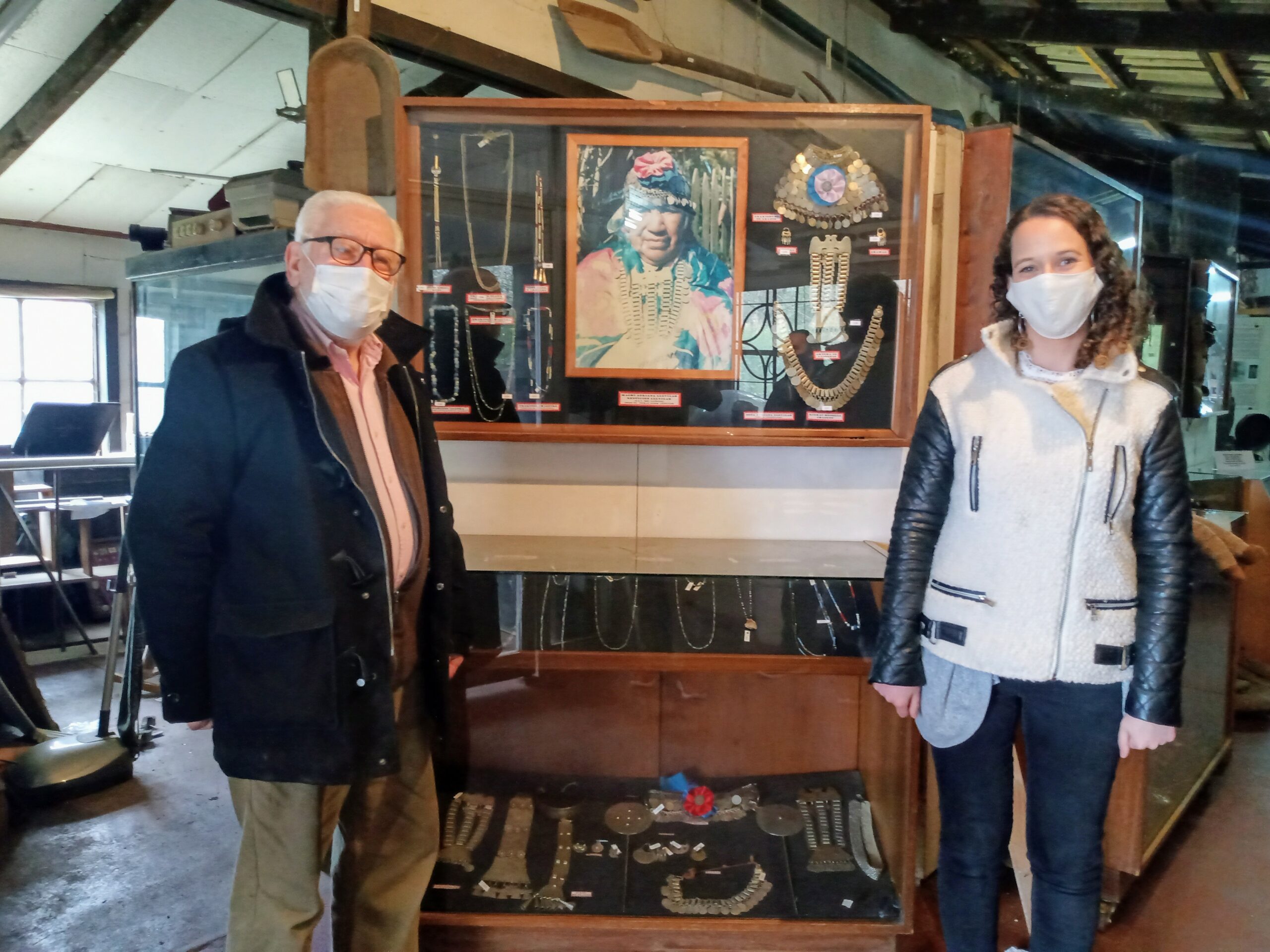 Tomas Stom, coleccionista y creador del museo, explica que “como cosa extraña y poco común, tenemos las joyas que usaba la machi Adriana Llevilao. Tenía dos ajuares, y cuando fallece se entierra en un ‘wampo’ con sus joyas. Ella conocía el museo, y pidió que esta colección pasara a mi resguardo. Esta colección incluye otras piezas muy interesantes. Resulta que la platería mapuche surge después de la llegada de los españoles, y tenemos joyas que son de ‘bronce campanil’, que es el relave volcánico, los mapuche hicieron joyas con este material”.