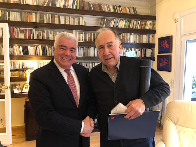 Hasta Barcelona llegó este lunes el galardón otorgado por el Estado de Chile al escritor español Joan Margarit, quien fue reconocido en junio del 2017 con el Premio Iberoamericano de Poesía Pablo Neruda, instancia que año a año pone en relieve a un autor o autora de reconocida trayectoria, cuyo trabajo sea una entrega notable al diálogo cultural y artístico de Iberoamérica.
