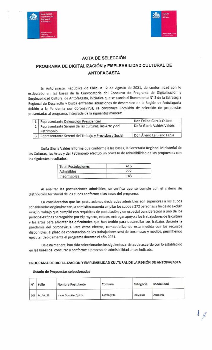 Acta de Selección – Programa de Digitalización y Empleabilidad Cultural de Antofagasta – 17082021