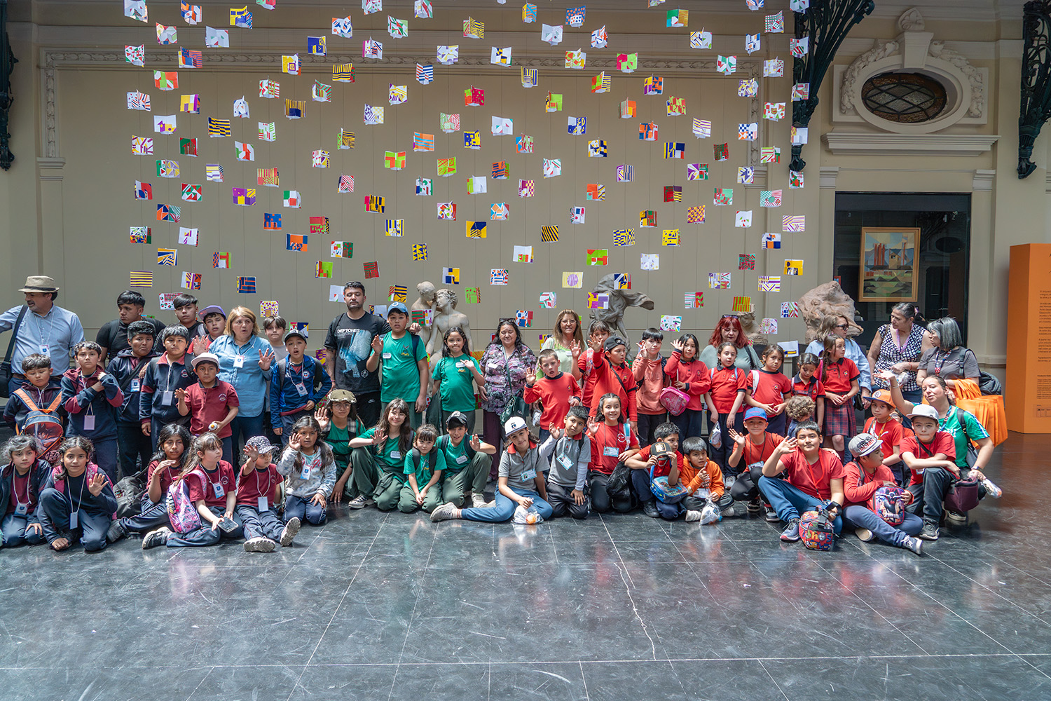 Con el propósito de poner en valor la obra de Matilde Pérez, pionera del arte cinético y referente fundamental de las artes visuales chilenas, el Ministerio de las Culturas, las Artes y el Patrimonio, en colaboración con el Museo Nacional de Bellas Artes, el Ministerio de Educación en su línea de Educación Rural y la Fundación Belén Educa se reunieron este viernes 08 de noviembre en el hall del MNBA junto a más de 300 escolares para presentar una gran obra colectiva en honor a la artista visual.
