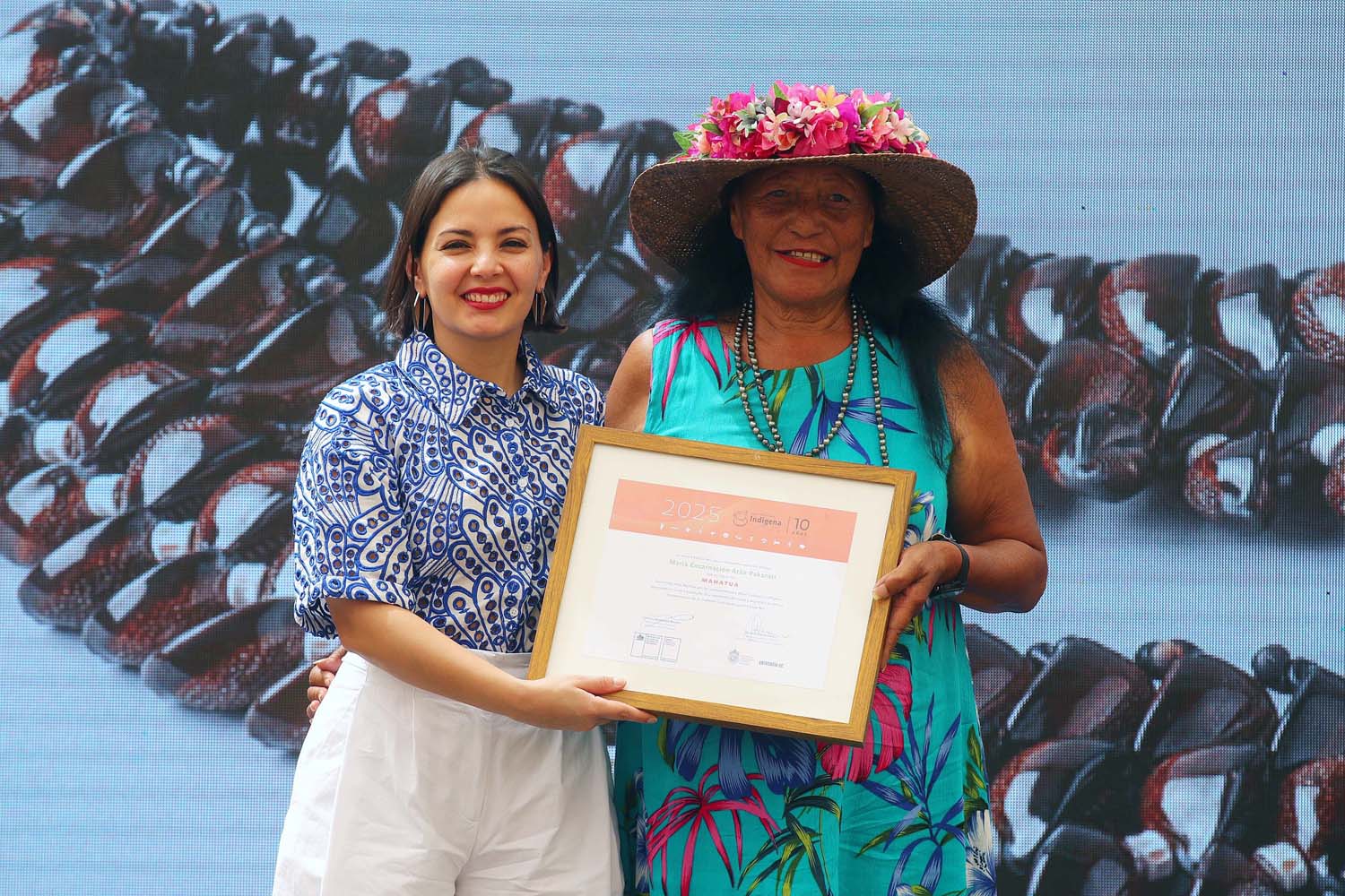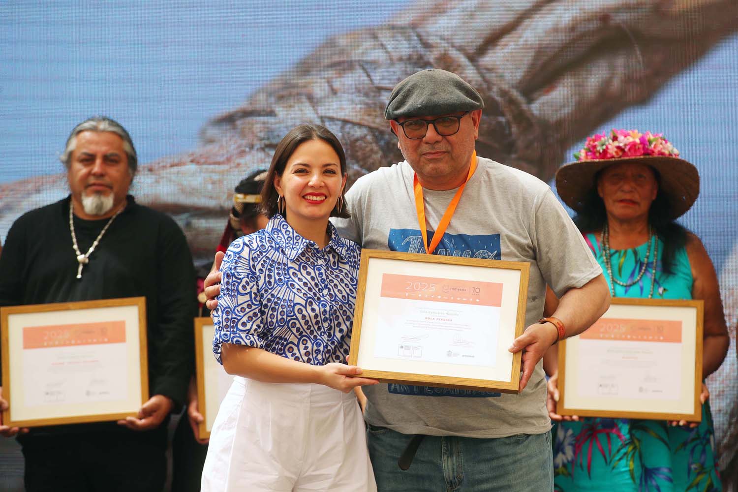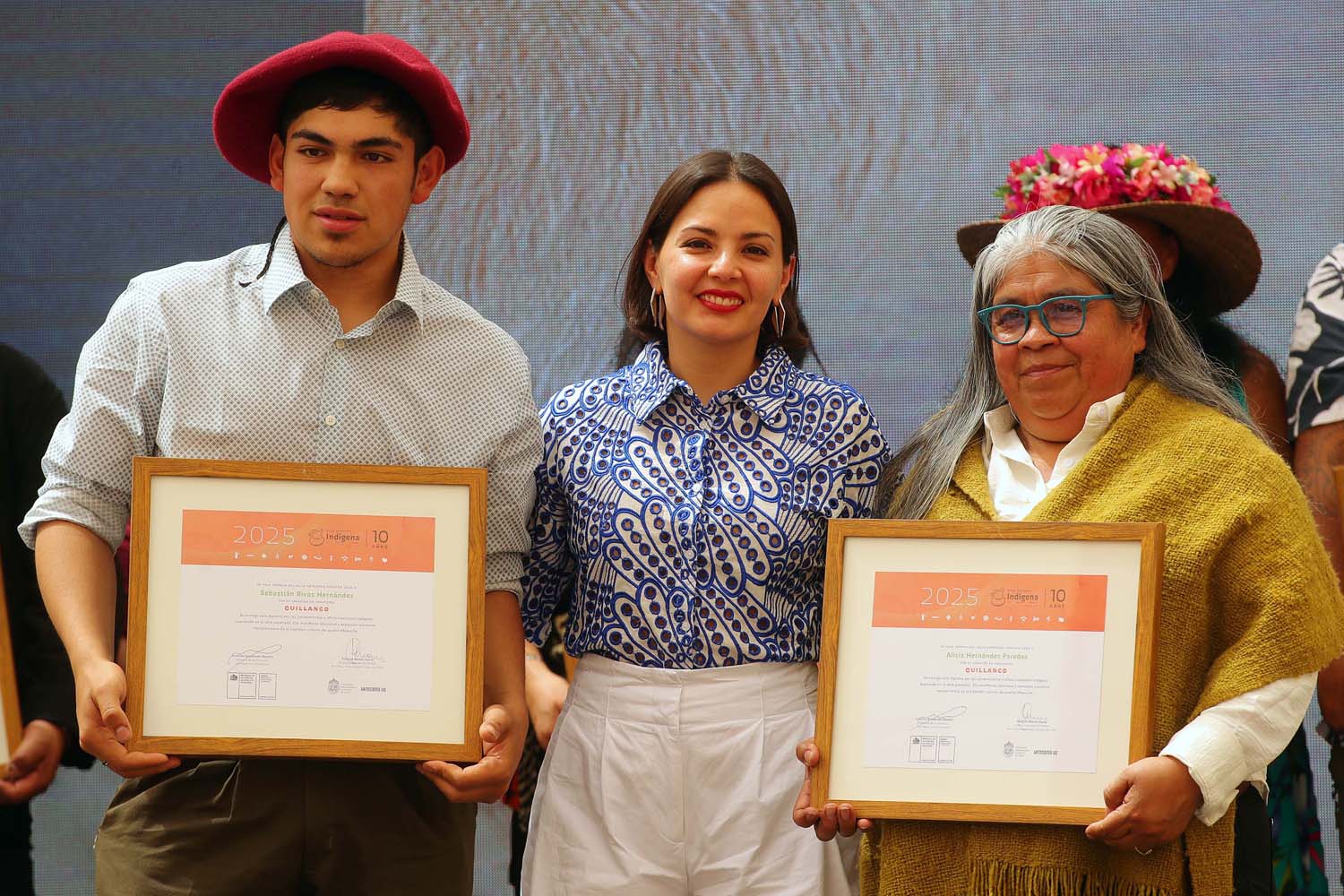 “Como parte de la inauguración de este encuentro, hoy también estamos realizando la ceremonia de premiación del Sello de Artesanía Indígena 2025, reconocimiento que cumple 10 años de vida. Esta distinción ha sido clave para fortalecer la recuperación, transmisión y proyección de los conocimientos tradicionales de los pueblos originarios y reafirmar el valor cultural, artístico y patrimonial de la artesanía indígena en Chile”, dijo la ministra de las Culturas, Carolina Arredondo.