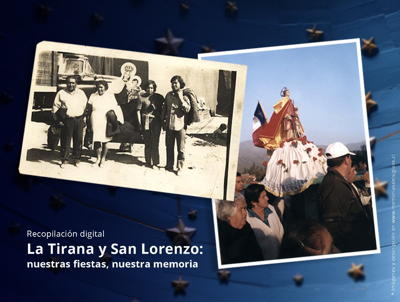 hora que la pandemia de Covid 19 obligó a las autoridades a tomar la misma medida, una de las alternativas para homenajear este 2020 a la “Reina del Tamarugal” es sumarse al proceso de recopilación digital “La Tirana y San Lorenzo: nuestras fiestas, nuestra memoria”, convocatoria del Servicio Nacional del Patrimonio Cultural que estará abierta hasta el sábado 15 de agosto en la sección Colabora del sitio web Memorias del Siglo XX.