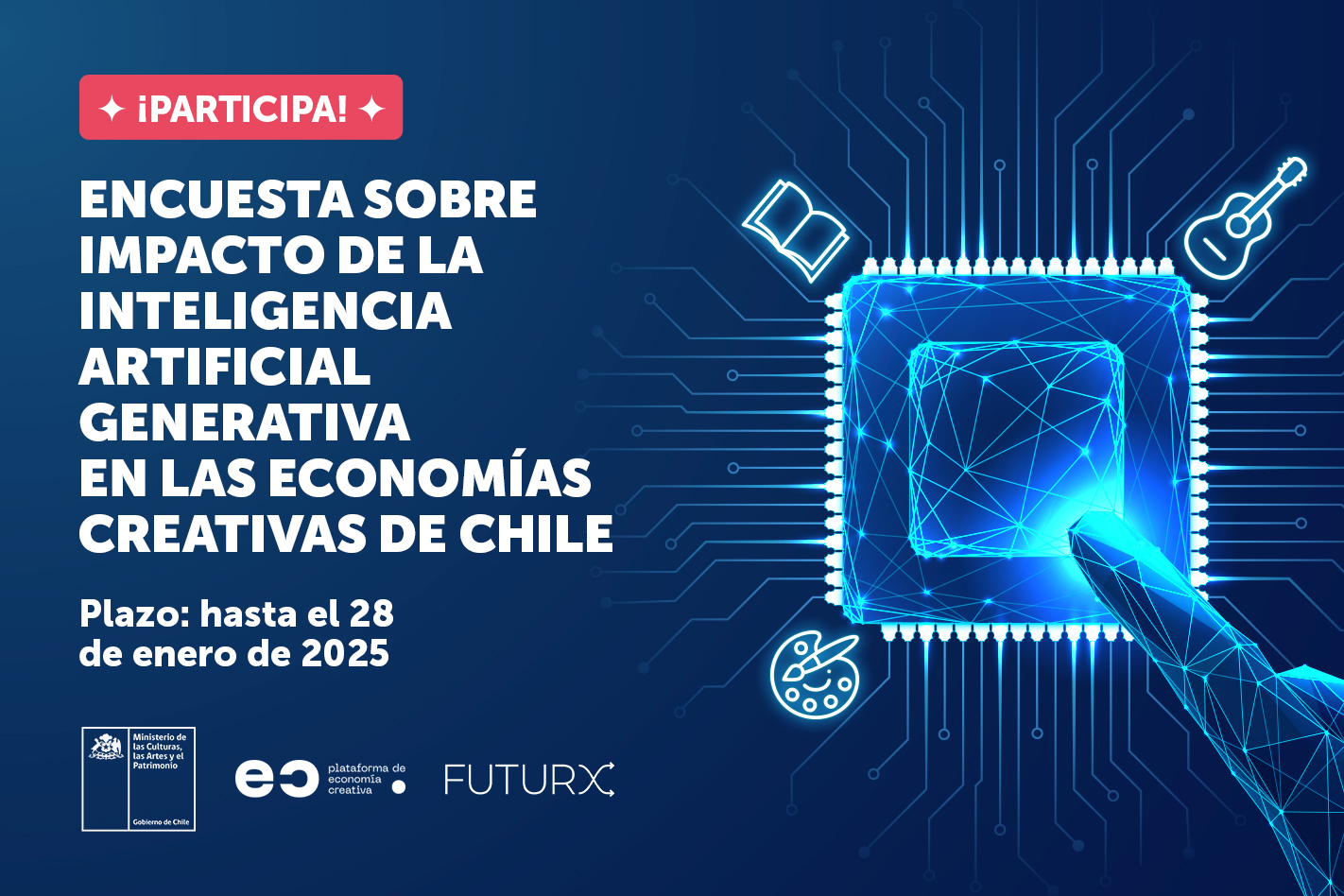 El Ministerio de las Culturas, las Artes y el Patrimonio, a través de la Secretaría Ejecutiva de Economía Creativa, invita a agentes culturales de todas las disciplinas de las economías creativas a participar en una encuesta como parte del reporte sobre Inteligencia Artificial Generativa en el ecosistema creativo de Chile