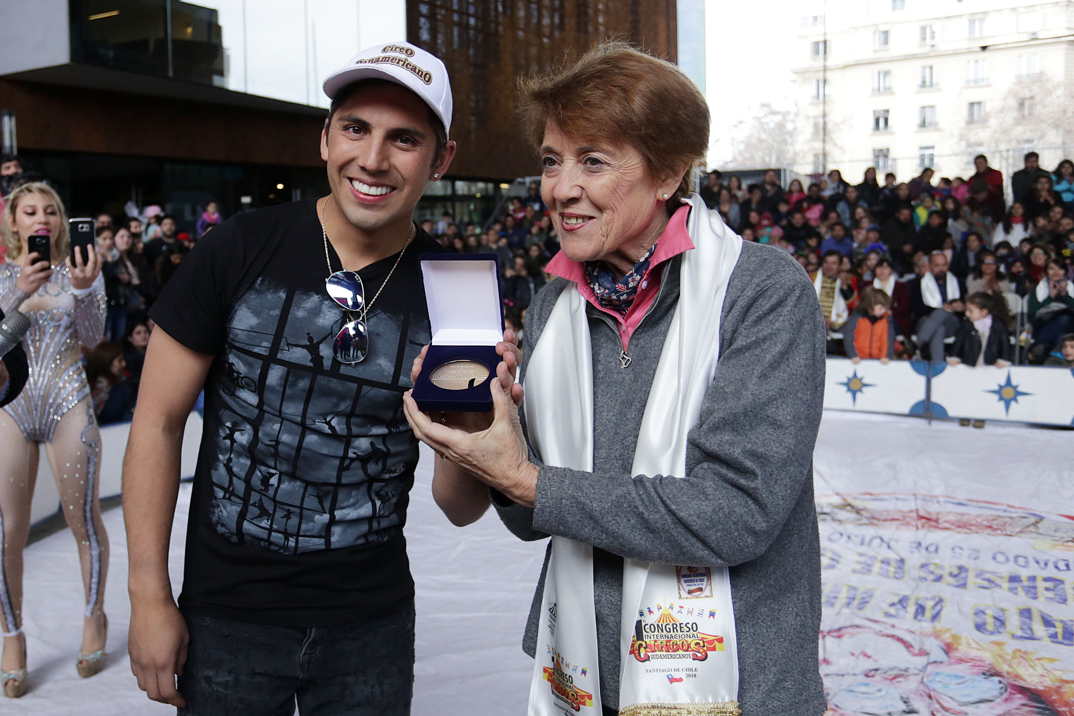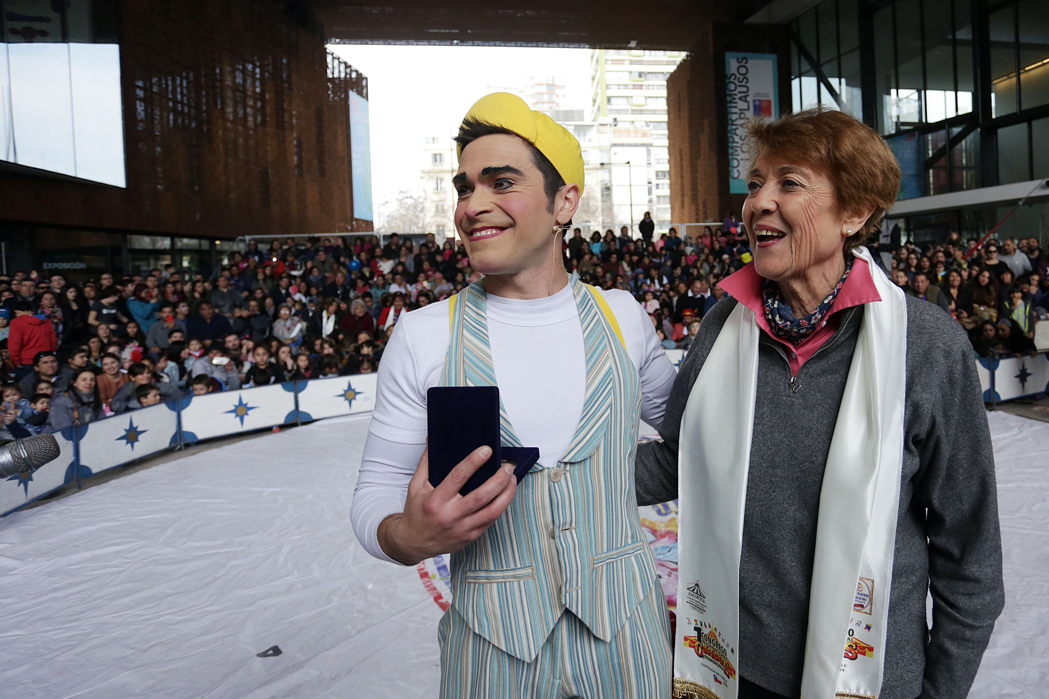 Además de una presentación en el patio central del GAM, en la oportunidad se homenajeó a tres jóvenes artistas que han destacado en circuitos internacionales de gran relevancia para el sector. Se trata de Susana Reyes (19 años), quien se dedica a la técnica pulsada (equilibrio sobre manos), lo que la ha llevado a distintos escenarios del mundo; Jonathan González (28 años), trapecista parte del Cirque Du Soleil, quien el año pasado hizo historia realizando un cuádruple con doble pirueta regreso, ejercicio nunca antes visto; y Matías “Matute” Álvarez (28 años), clown que ha representado a Chile en distintos escenarios alrededor del mundo.
