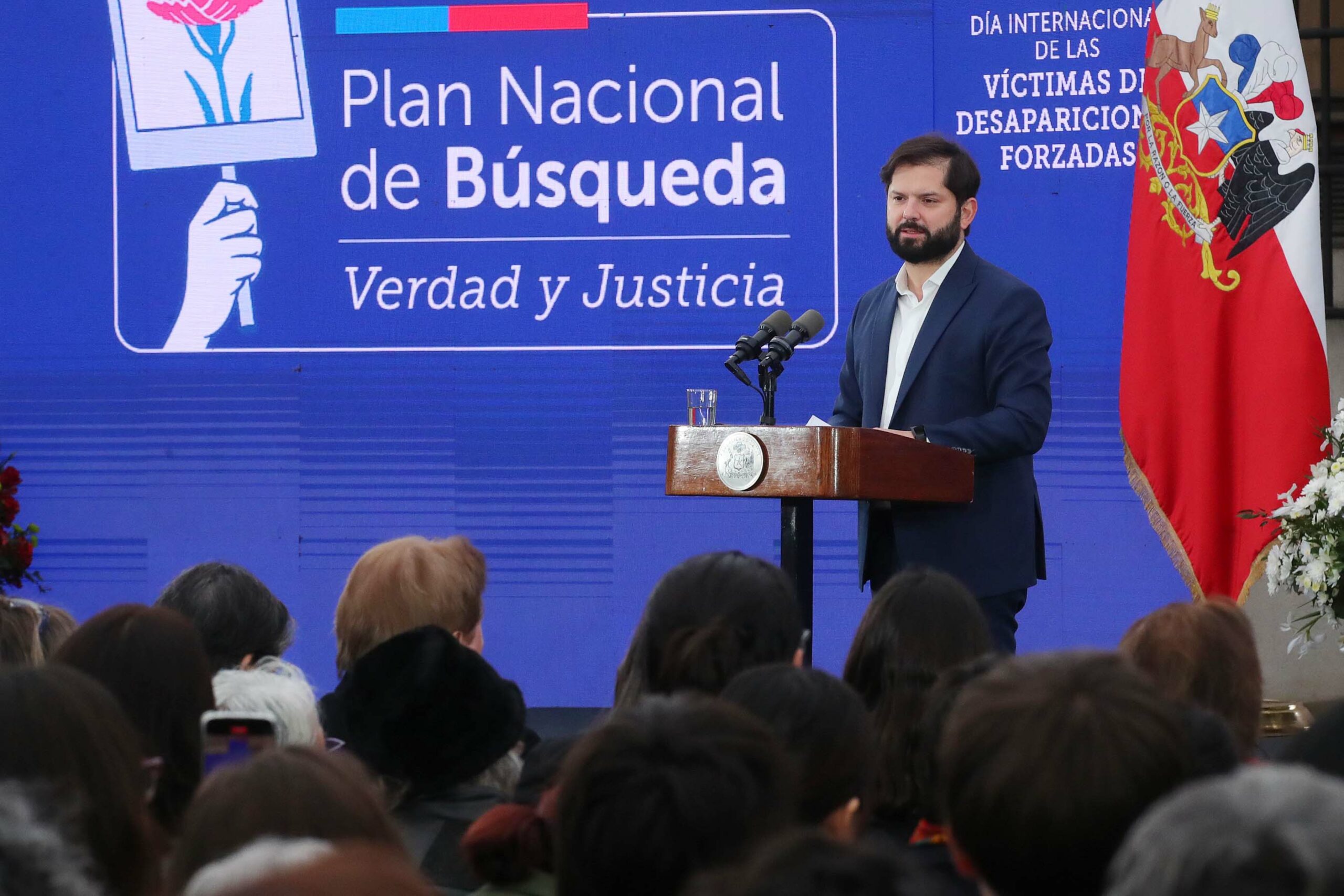 En la ceremonia, donde también participaron los subsecretarios y subsecretarias de Derechos Humanos, Daniela Quintanilla; de Justicia, Ernesto Muñoz; y de la Secretaria General de Gobierno, Erwin Díaz; el Jefe de Estado destacó los avances del Plan Nacional de Búsqueda de Verdad y Justicia, la primera política del Estado de Chile con el objetivo de esclarecer las circunstancias de desaparición y/o muerte y el destino de las víctimas de desaparición forzada durante la dictadura civil-militar.