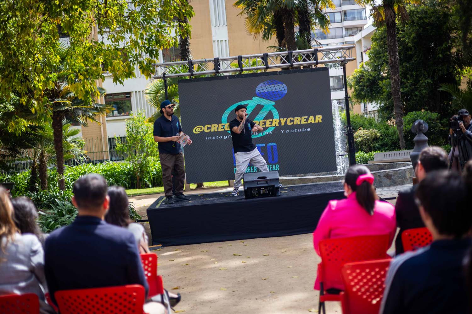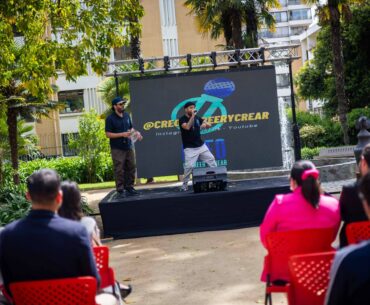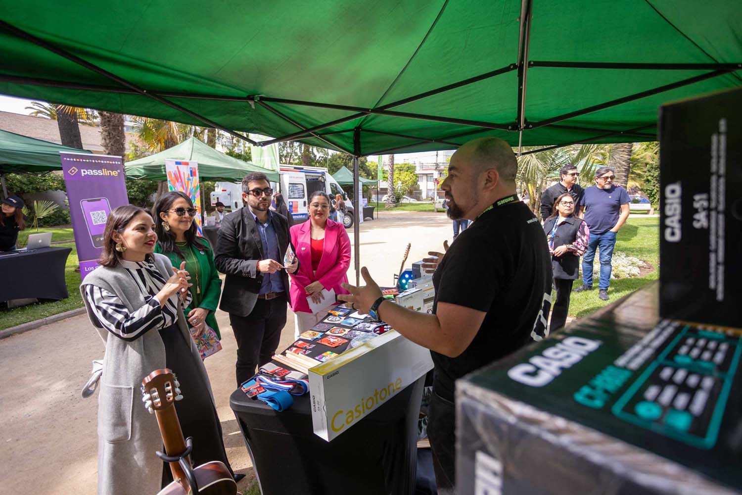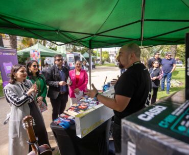 Hasta allí llegaron también la ministra de las Culturas, las Artes y el Patrimonio, Carolina Arredondo; la alcaldesa de la Ciudad Jardín, Macarena Ripamonti; y el seremi de las Culturas, Javier Esnaola, quienes compartieron con las y los jóvenes y recorrieron la feria implementada especialmente para ellos.