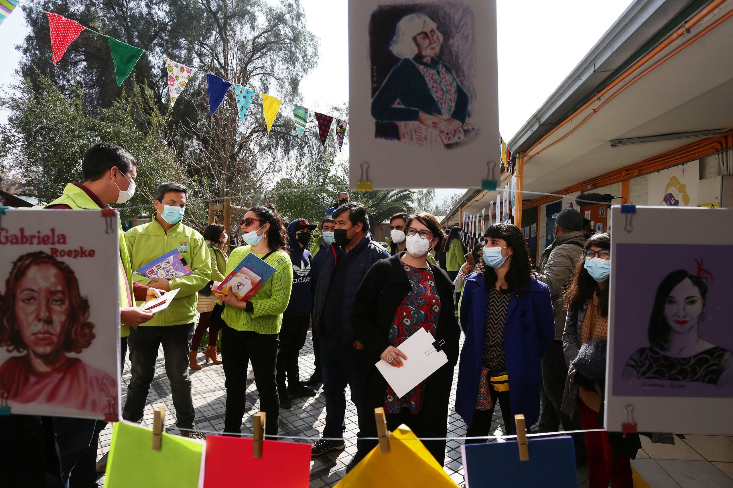 Este jueves la ministra de las Culturas, las Artes y el Patrimonio, Julieta Brodsky, asistió al lanzamiento de la itinerancia de la exposición E.M.A., Enciclopedia de Mujeres en el Arte, en la Escuela Domingo Santa María de la comuna de Renca. El proyecto, apoyado por el Ministerio de las Culturas, investiga crea y difunde contenidos originales inspirados en mujeres artistas de la música, las artes escénicas y el diseño en Chile.