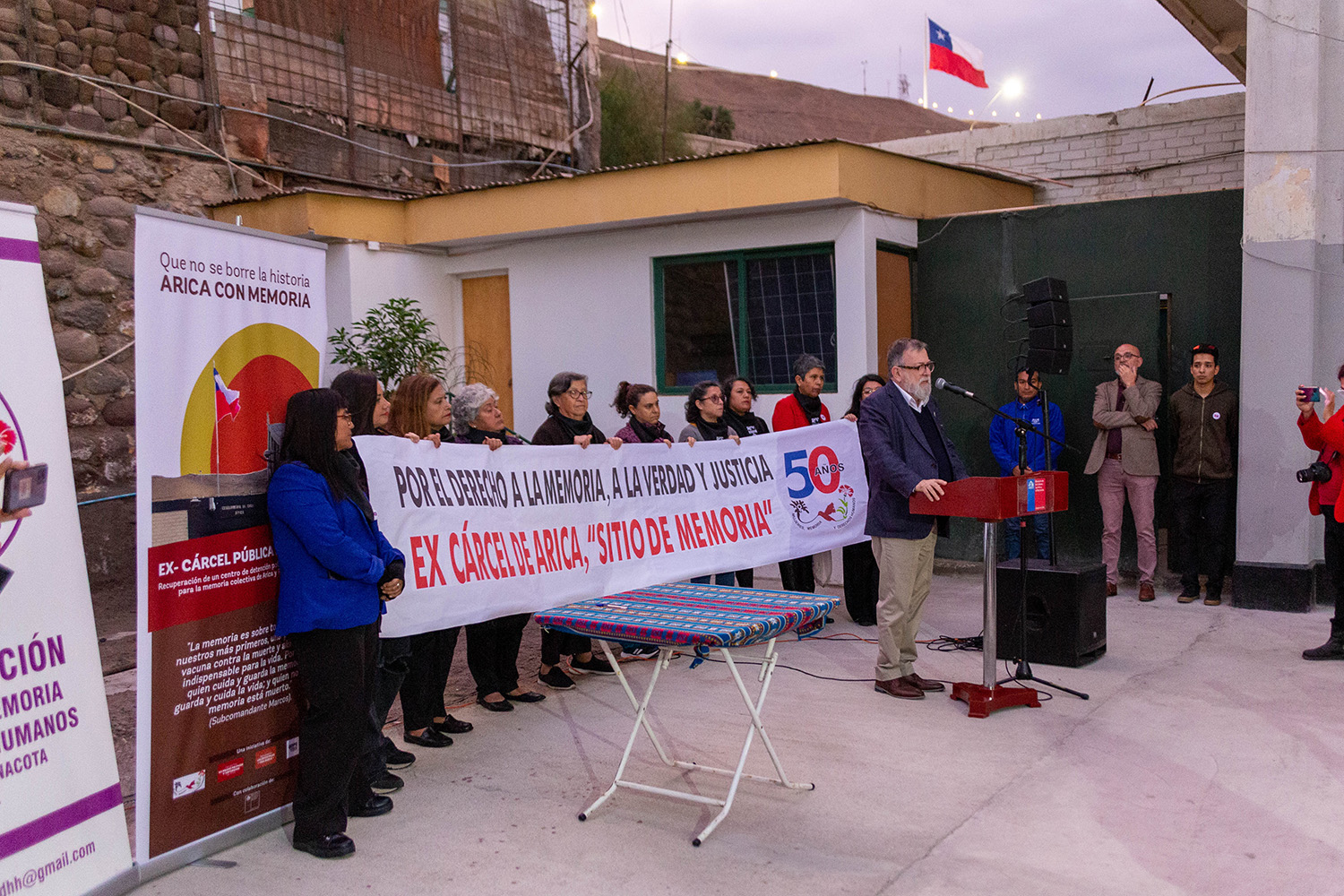 “Este es un anhelo de muchos años por parte de las agrupaciones regionales de DDHH de Arica y Parinacota en cuanto a indicar, nombrar y difundir aquellos lugares donde hubo violación a los Derechos Humanos en dictadura, siendo la Ex Cárcel de Arica el primer lugar en el extremo norte del país en recibir esta declaratoria por parte de Monumentos Nacionales”, dijo el ministro de las Culturas, las Artes y el Patrimonio, Jaime de Aguirre.