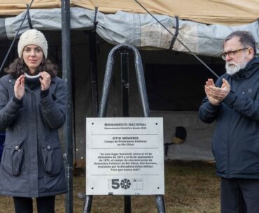 La placa fue descubierta entre aplausos, emoción y cálidos abrazos que quebraron el frío austral durante la mañana de ayer en Isla Dawson, en la región de Magallanes y la Antártica chilena. Fue el propio ministro de las Culturas, las Artes y el Patrimonio, Jaime de Aguirre, junto a la subsecretaria del Patrimonio Cultural, Carolina Pérez, quienes develaron la pieza de metal grabado en la que se señala que un sector de la isla es Monumento Histórico desde 2010 y que también es un Sitio de Memoria. “En este lugar funcionó, entre el 21 de diciembre de 1973 y el 26 de septiembre de 1974, el campo de concentración de detenidos políticos de Río Chico, Isla Dawson, instalado por la dictadura cívico militar. Para que nunca más”, dice la inscripción.