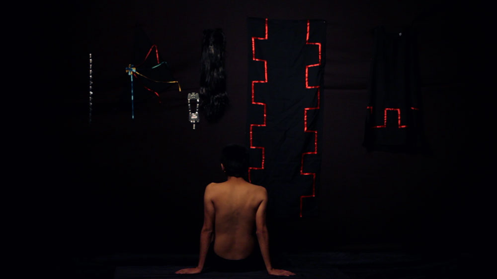 Por otra parte, el artista Sebastián Calfuqueo presenta su video perfomance de la serie “You will never be a weye” (2012/2015), el cual indaga en asuntos biográficos relacionados con su género y origen, contraponiendo las narrativas que han conformado su tradición familiar mapuche a los cambios impuestos en el tiempo por fuerzas externas.