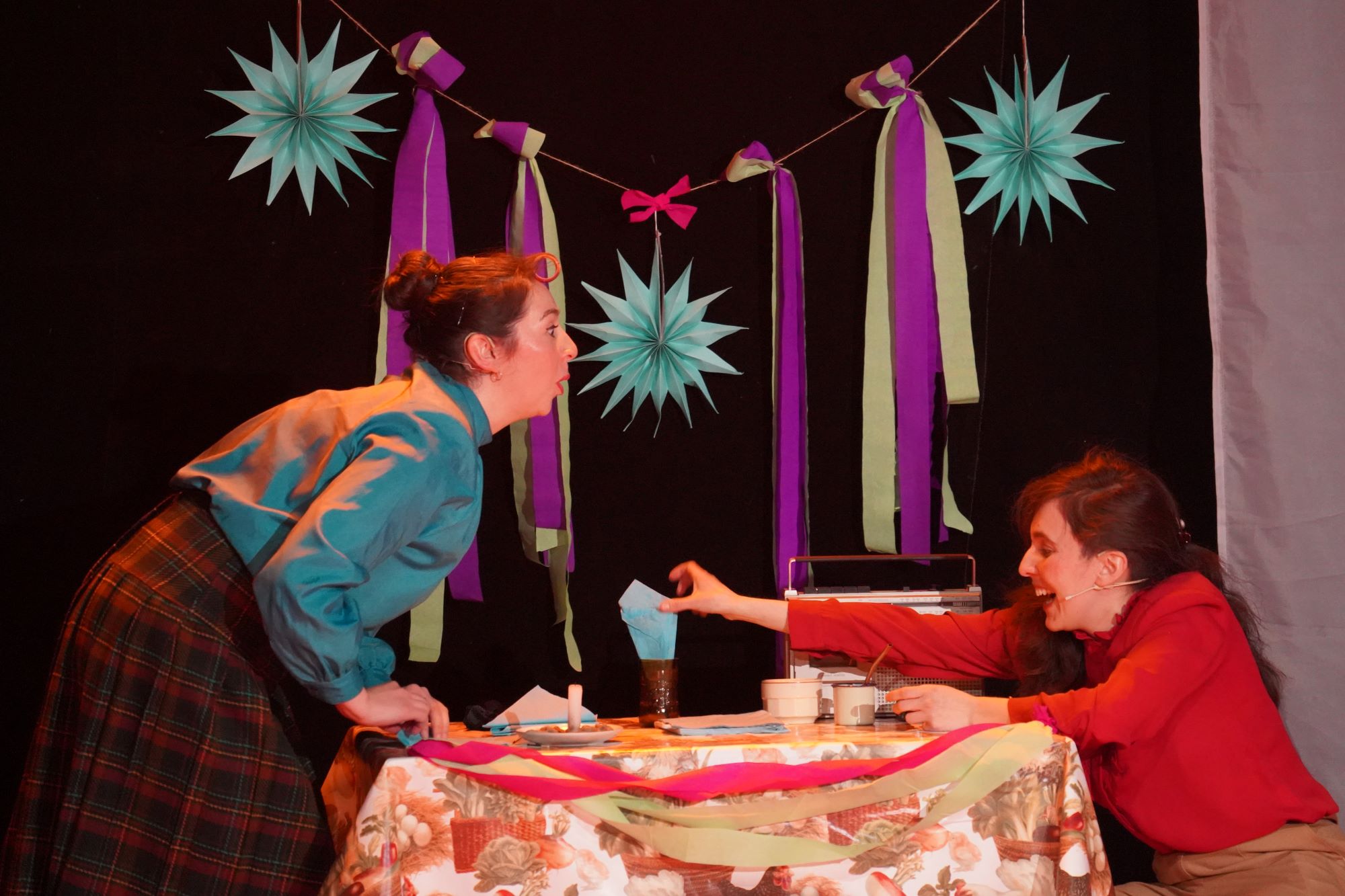 La puesta en escena, para un público adulto y juvenil, tiene una duración de cincuenta minutos. La interpretación está a cargo de Paula Torres Olivares y Pamela Riquelme Barrientos.