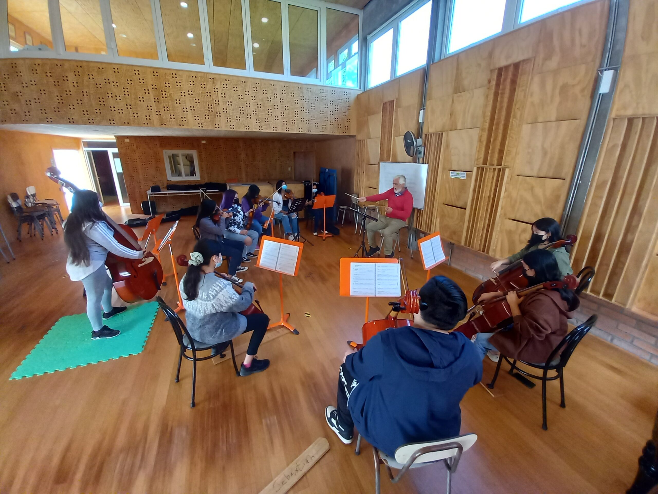 “Aunque la pandemia afectó nuestro progreso, al no haber podido tener con mayor regularidad actividades presenciales, la orquesta igualmente ha demostrado avances importantes desde que finalmente se pudo adecuar el trabajo formativo a las circunstancias de la crisis sanitaria. Sin duda que juntarnos está fortaleciendo el trabajo orquestal, lo que se suma a grandes triunfos como por ejemplo que algunos de nuestros niños se hayan iniciado en sus instrumentos con clases online”, dice Matamala.