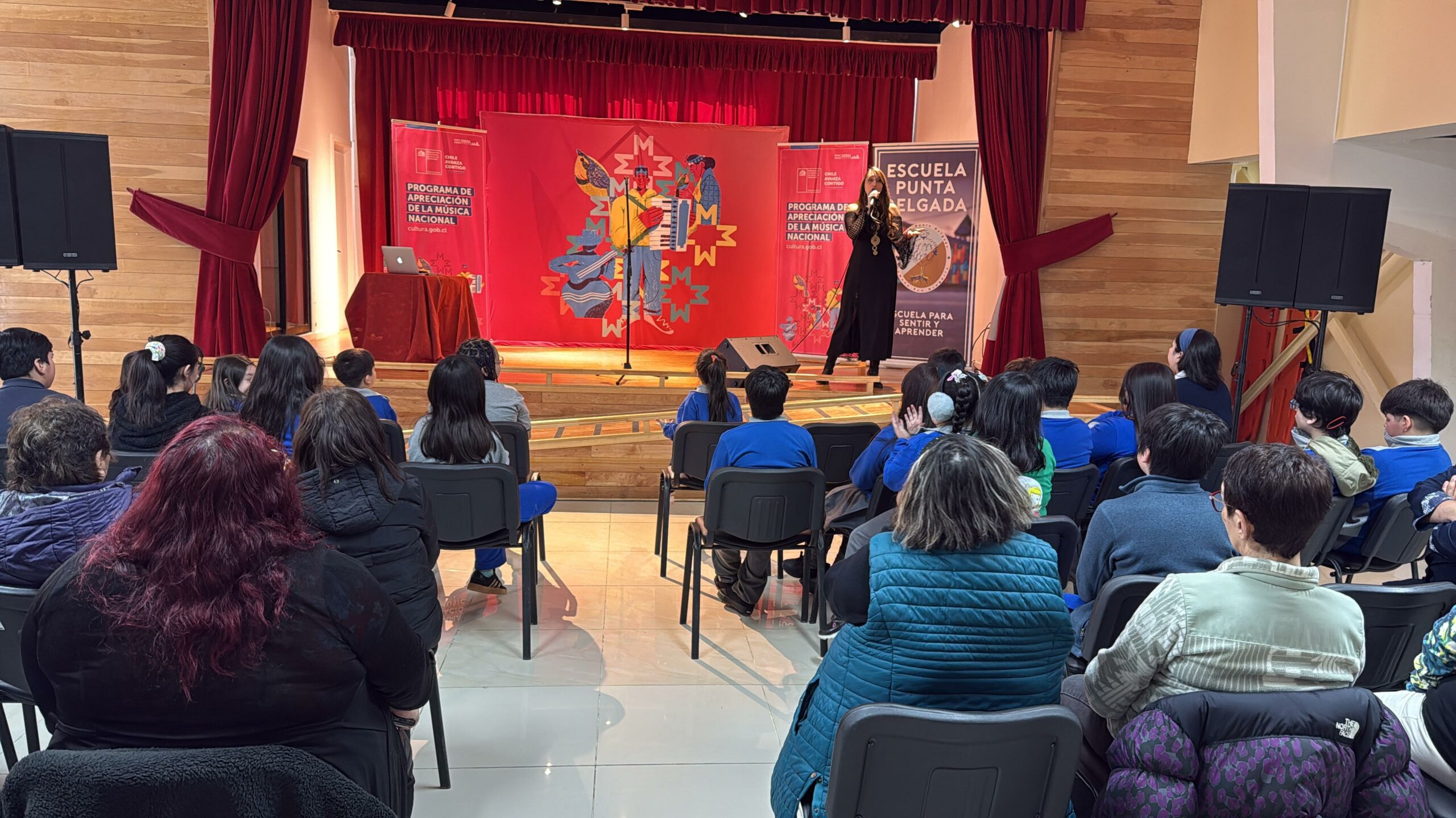 Luego de dialogar con alumnas y alumnos de la escuela Punta Delgada, la cantante de la región de Los Lagos ofreció, el reciente martes -en dependencias del mismo establecimiento educacional- un concierto abierto a toda la comunidad.