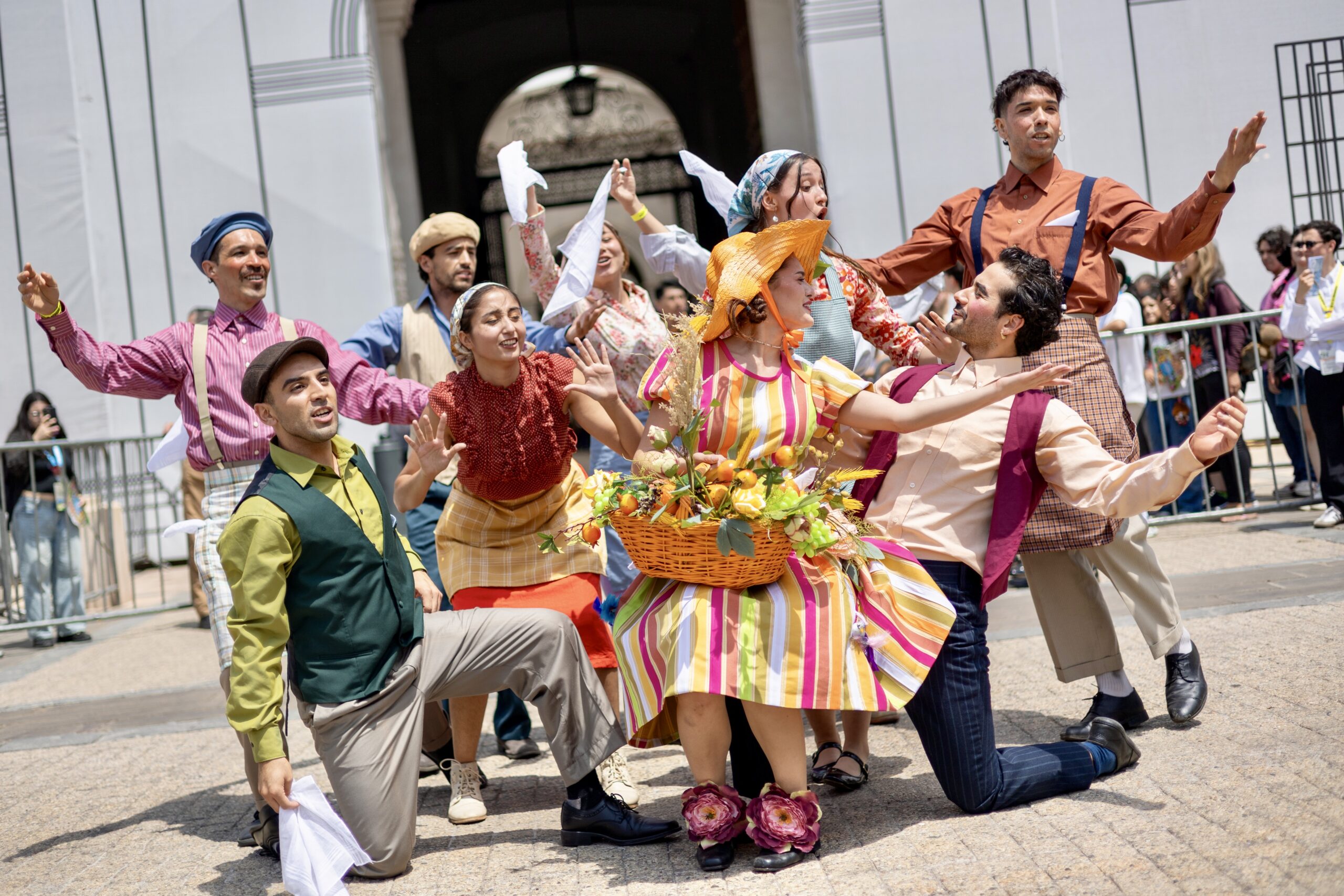 En el Palacio de La Moneda, a eso de las 14:30 horas también se presentaron músicos y bailarines que fueron parte del “Pasacalle de las flores”, que sorprendió a las y los asistentes que participaban de los recorridos guiados en el Palacio de Gobierno.