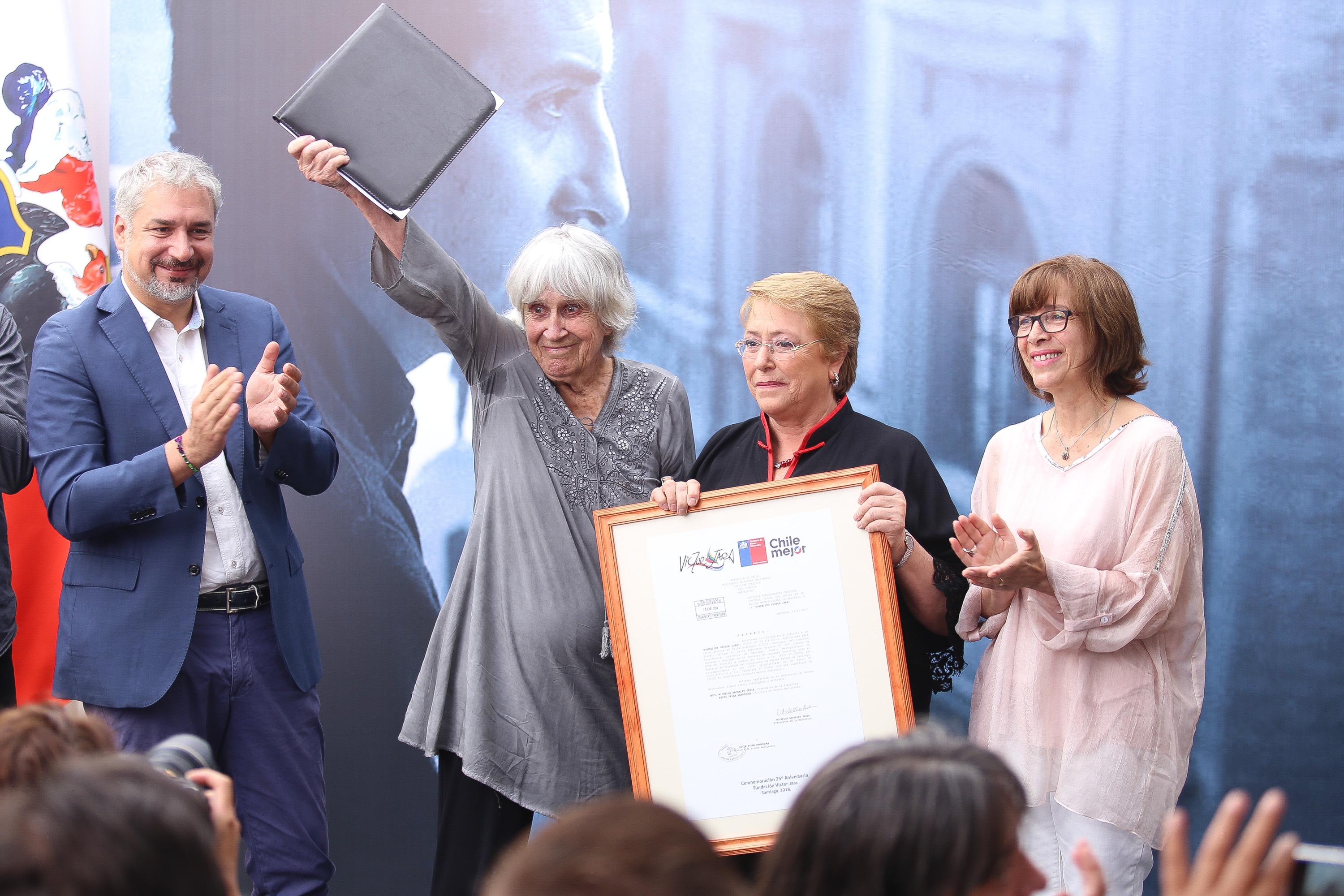 Durante la ceremonia, la Presidenta Bachelet además destacó la lucha por la paz, la justicia, la solidaridad entre los seres humanos. “Víctor supo acompañar esa sed de justicia con sus canciones, con su trabajo junto a Quilapayún, y supo abrirse a nuevas sonoridades y nuevos caminos. Su compromiso resultó imperdonable para quienes no querían que las grandes mayorías pudieran hacerse dueñas de su destino, y por eso el odio se ensañó con él, como ocurriría con tantos otros hombres y mujeres de Chile”, afirmó.