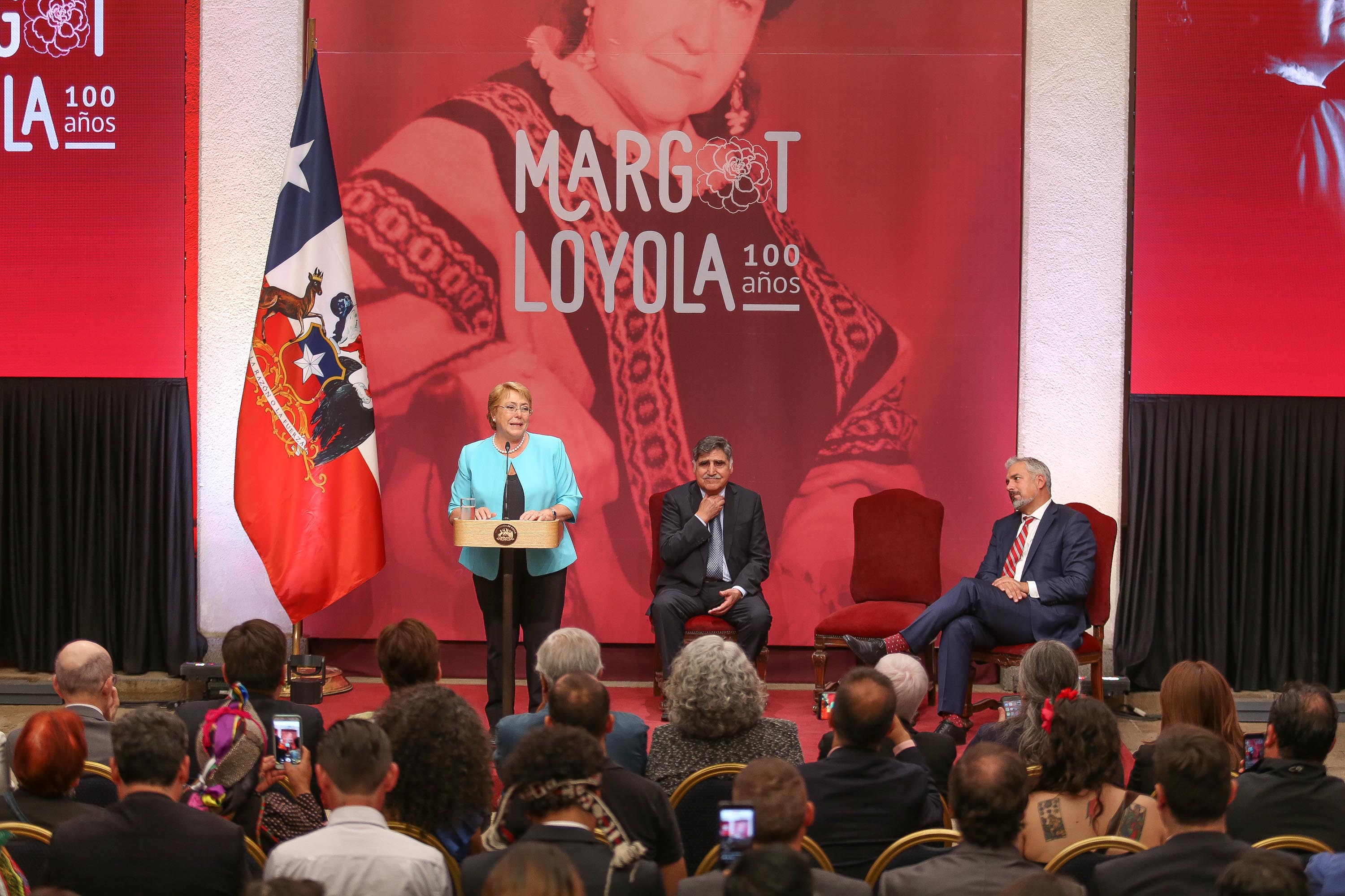 La Presidenta Bachelet destacó el carácter diverso y plural de su legado: “Sé que la conmemoración de los cien años del nacimiento de Margot Loyola nos permitirá conocer mejor a una mujer excepcional, parte de una generación de investigadoras valientes y muy jugadas, que entendieron que las culturas campesinas, indígenas, rurales, debían ser conocidas y juzgadas en sus propios términos, enriqueciendo así nuestro acervo y nuestro patrimonio común”.