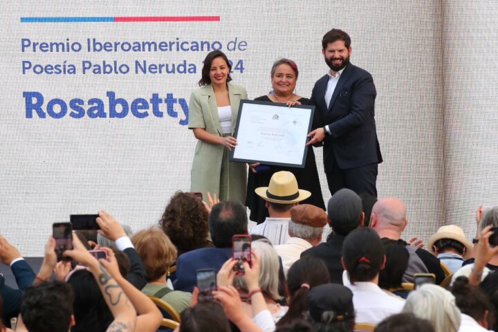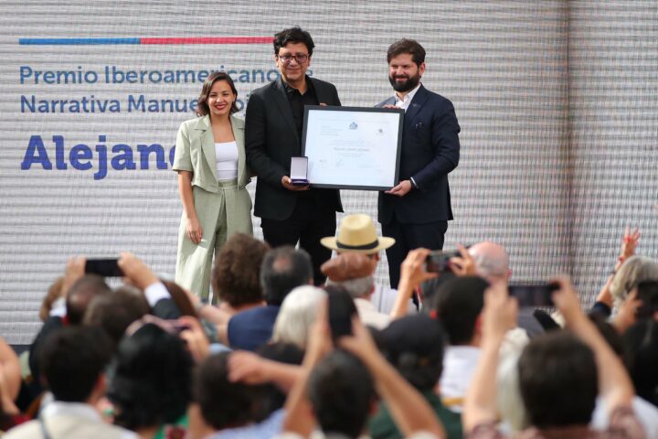 Este jueves 21 de noviembre, el Presidente de la República, Gabriel Boric Font, junto a la ministra de las Culturas, las Artes y el Patrimonio, Carolina Arredondo Marzán, encabezaron la ceremonia de entrega del Premio Iberoamericano de Narrativa Manuel Rojas 2023 al escritor chileno Alejandro Zambra, y del Premio Iberoamericano de Poesía Pablo Neruda 2024 a la poeta nacional Rosabetty Muñoz.