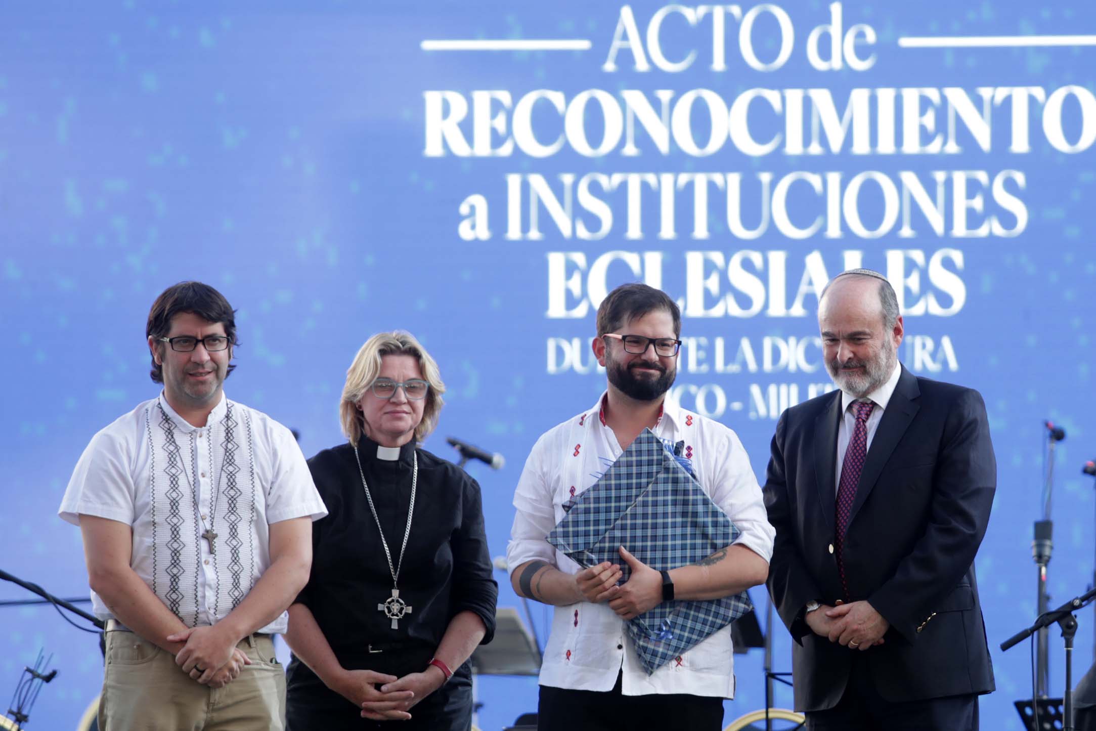 “En aquellos días, meses y años que siguieron al Golpe de Estado yo aún no estaba vivo, pero he tenido la oportunidad de conversar con mucha gente que vivió en esa época, se vio de frente el horror y salió lo peor, lo peor del ser humano. Pero también, como decía nuestro Ministro de Cultura, también emergió de nuestra comunidad lo mejor y lo más noble, eso de vivir en carne propia la solidaridad, saber que la existencia, la vida misma depende de la confianza en otro. Se hizo presente la amistad, el cariño al prójimo, el sentido de justicia, el riesgo desinteresado por un hermano o una hermana. Y en esa parte luminosa de la historia que es la que queremos rescatar, estuvieron las Iglesias aquí presente, muchas de ellas insertas en el mundo popular donde, a veces, el Estado no llegaba y en donde, todavía hoy, el Estado no llega. Y eso lo tomo también como desafío, porque recorriendo Chile me he dado cuenta, por ejemplo, que en el Chile rural que no se ve desde Santiago, en donde el Estado no alcanza a llegar con sus herramientas y son las comunidades, muchas veces, de las Iglesias o la sociedad civil las que llegan antes”, dijo el Presidente Boric.