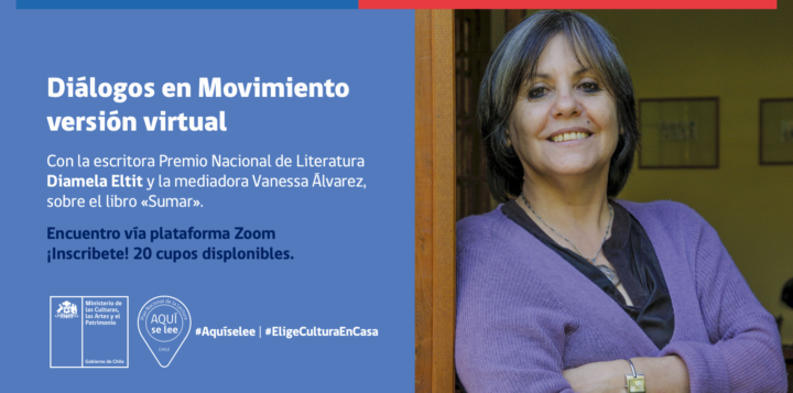 La seremi Paulina Concha Ferrada realizó la invitación al encuentro: “queremos convocar a la juventud de nuestra región a la primera experiencia de Diálogo en Movimiento Virtual, a través de las plataformas digitales, donde se enviará el enlace de la transmisión a las personas inscritas que deseen participar de esta actividad única, de compartir con una de las principales figuras de la literatura nacional, donde analizaremos y reflexionaremos sobre la obra Sumar de la Premio Nacional Diamela Eltit”.