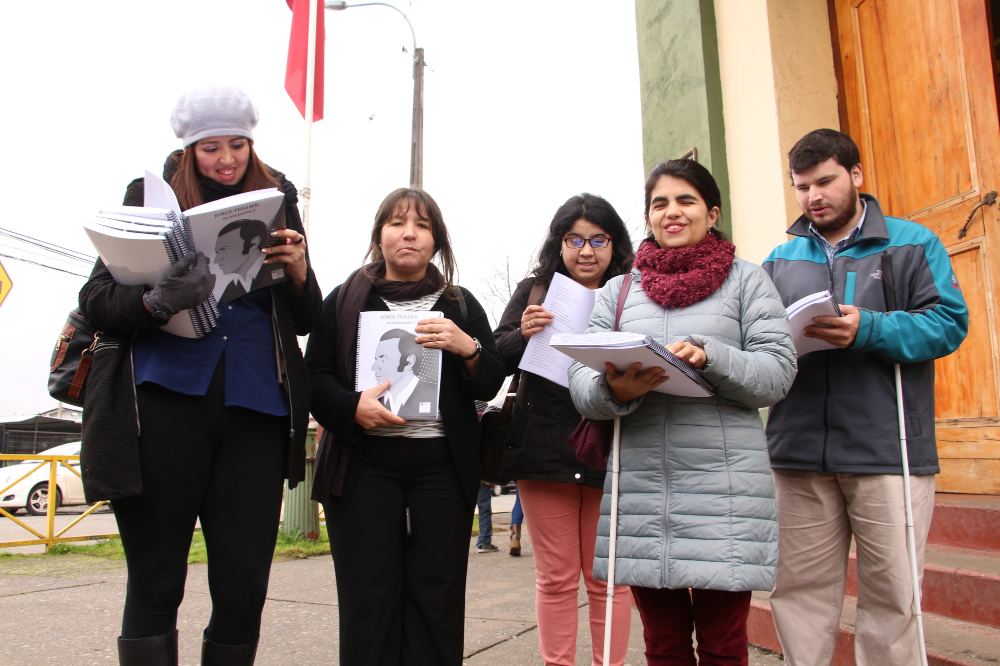 “Jorge Teillier en seis puntos” se titula el libro que fue presentado por el periodista Carlos Valverde y el hijo del poeta lautarino Sebastián Teillier, y que está dirigido a personas en situación de discapacidad visual. La obra financiada por el Consejo de la Cultura y las Artes a través del Fondo de Fomento del Libro y la Lectura, reúne 18 poemas del escritor y fue lanzado en el Liceo Jorge Teillier de la comuna de Lautaro con la presencia de autoridades regionales y locales, entre ellas el director de Cultura Pedro Mariman, el alcalde Raúl Schifferli, el diputado Fuad Chahin, la directora de Senadis Daniela Guerrero y el director del establecimiento Leonardo Olguín, entre otros.
