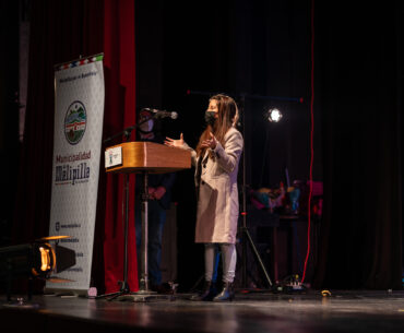 Ante la presencia de escolares de distintas escuelas de Melipilla se desarrolló este emotivo homenaje, un acto simbólico que entregó un reconocimiento a María Cartés, presidenta de la Agrupación de Arpilleristas de Melipilla, para decirle a ella y a la población lo importante que son para este territorio.