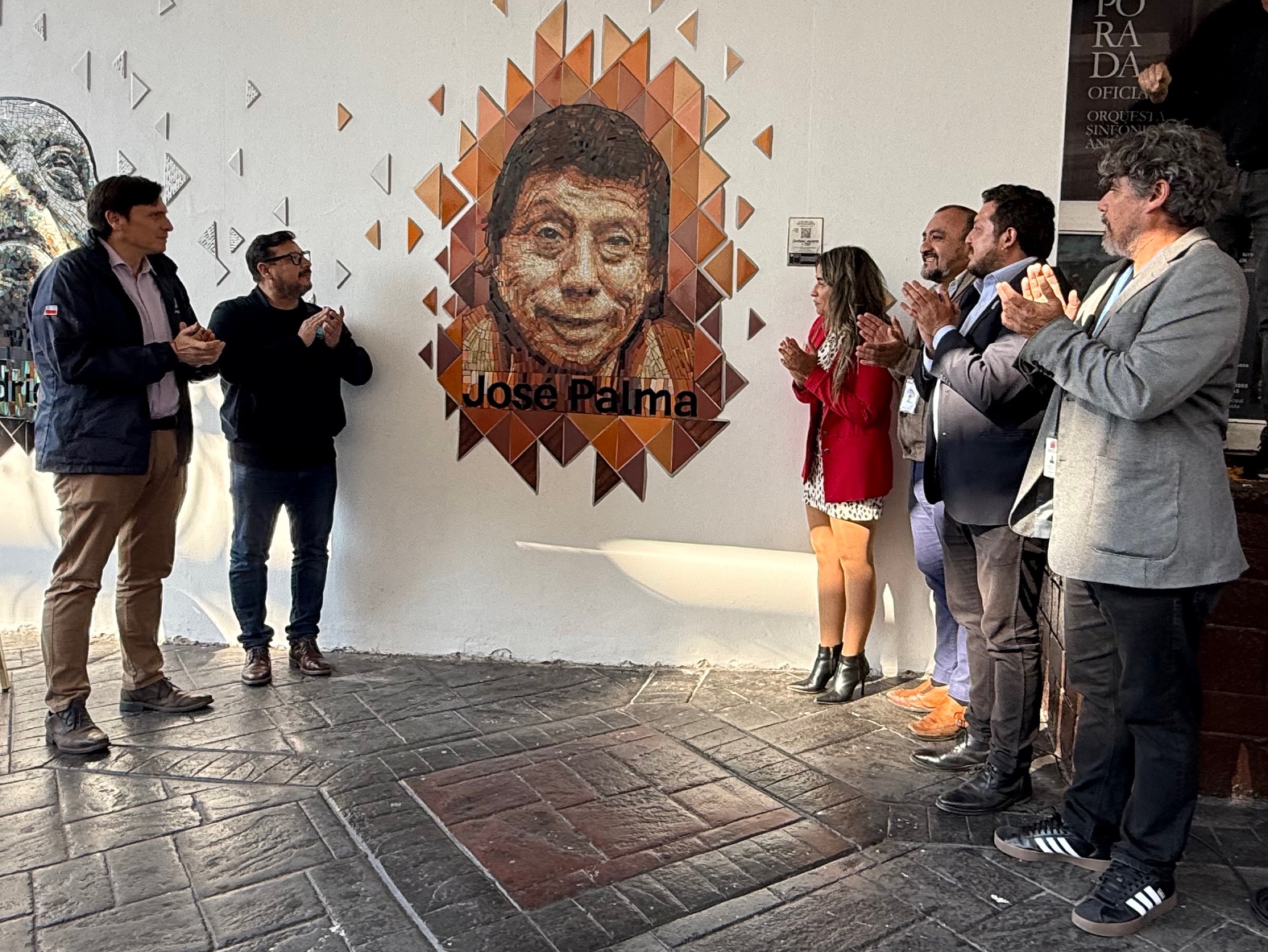 El mural en mosaico en homenaje a José Palma Bustamante, fue inaugurado en una significativa ceremonia realizada en el frontis del Teatro Municipal la cual contó con la presencia de autoridades, familiares, artistas, comunidad universitaria y vecinos.