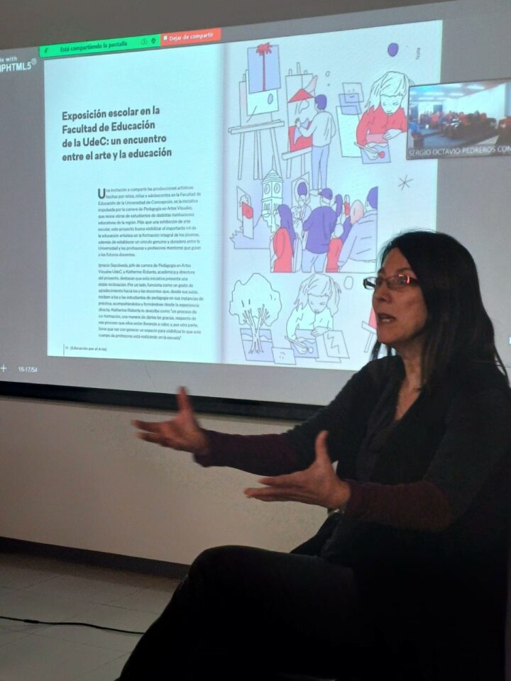 El tercer momento estuvo dedicado a profundizar dos experiencias destacadas de la revista. En primer lugar, el proyecto Archivo de Cultura Tradicional: conservar para recuperar la memoria, a cargo de Lisette Venegas (Corporación Cultural Artistas del Acero) y Felipe Romero (SLEP Andalién Sur), que rescata el vínculo entre escuelas rurales y su comunidad mediante el documental El jardín de la memoria. Luego, la doctora Katherine Roberts, académica de la Universidad de Concepción, presentó un proyecto de medición de artes visuales que ha convertido la Facultad de Educación en un espacio de creación, exposición y diálogo con comunidades educativas.