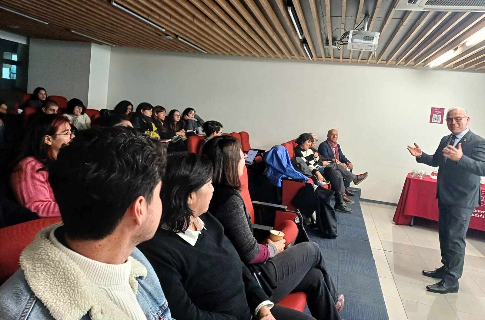 El relanzamiento de la sexta edición de la revista Cuadernos a la Mesa se llevó a cabo este martes 27 de mayo en el auditorio de la Universidad Andrés Bello, sede Concepción-Talcahuano. El encuentro contó con la participación del Vicerrector Carlos González Correa, el coordinador de Prácticas de Pedagogía en Educación Media para Licenciados y Titulados, Profesor Mg. Sergio Pedreros Concha, y de un activo grupo de estudiantes del mismo programa.