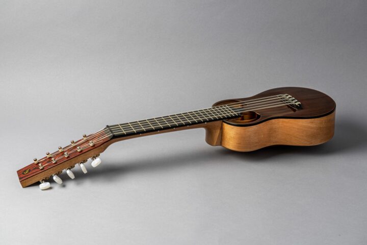 Se destacan las nuevas formas geométricas, en especial las dos bocas en el lóbulo superior de la tapa que aportan valor estético y sobriedad. El diseño estético de la pieza es innovador y más sobrio que el charango tradicional, y también geometrías y formas nuevas como las dos bocas en el lóbulo superior de la tapa. Este proceso productivo de gran complejidad junto a un oficio bien cuidado, hacen de este instrumento una pieza única, trabajada con excelencia.