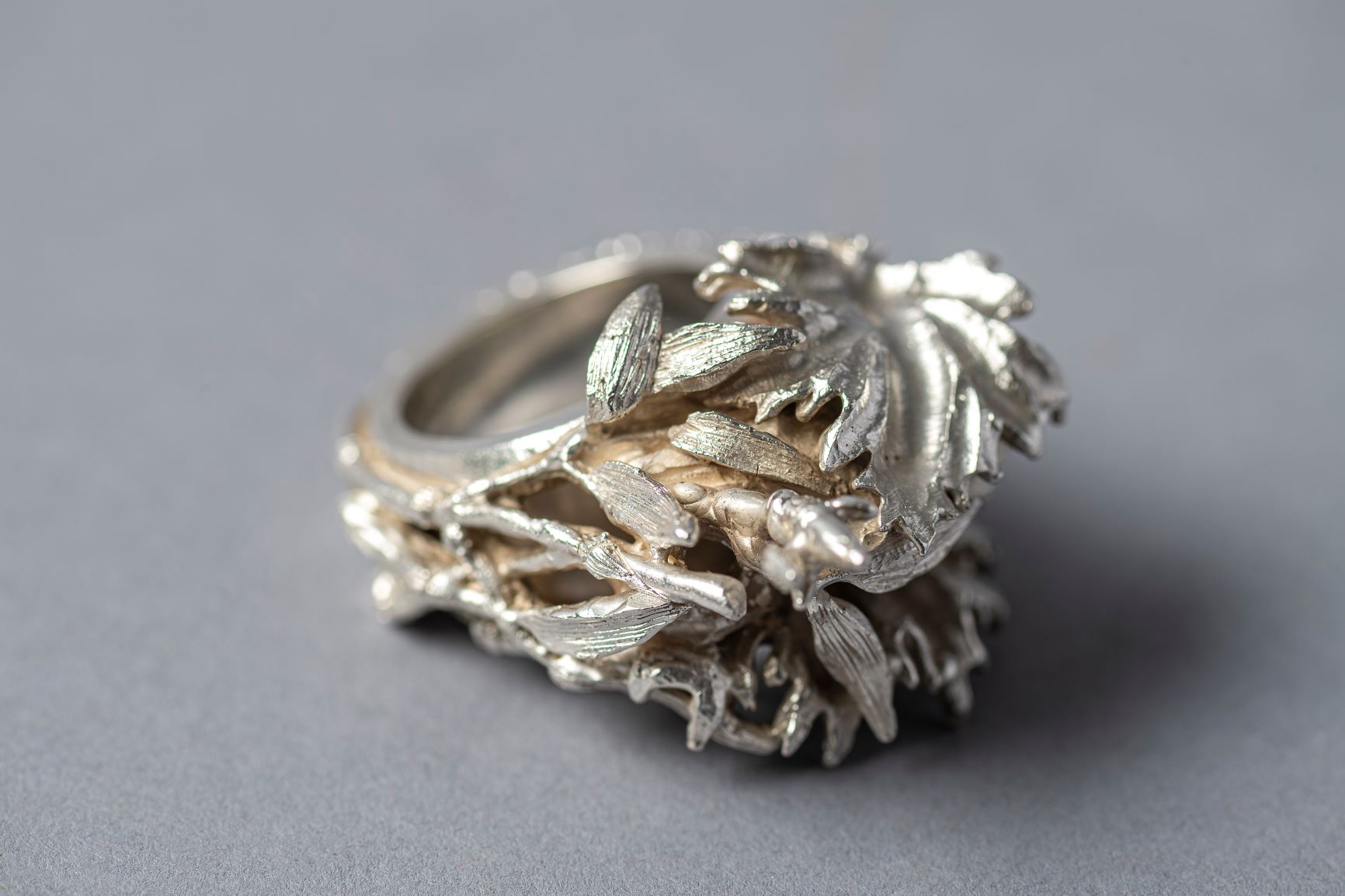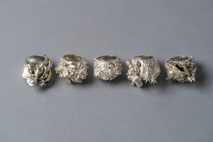 Atlas botánico: Alianzas botánicas es una colección de cinco anillos en plata (Puya•Coquimbana, Foye•Chilco, Pewén•Coliu, Quila•Pangue y Palito•Culcul) que nace de la observación y estudio de la flora chilena, y busca a representación de nuestro país a través de las plantas en su calidad de “personas no humanas”, según detalla la autora. Las piezas simbolizan que “en cada alianza se establecen relaciones entre dos seres vegetales, y a su vez con el cuerpo humano”. La propuesta innova en la revisión de los conceptos de alianza y atlas.