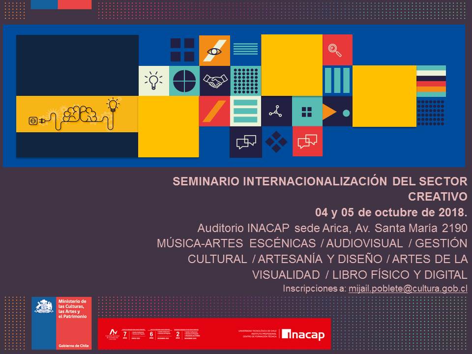 Arica es una ciudad fronteriza. Un punto privilegiado para el comercio exterior, tanto de mercancías, materias primas, pero también de cultura. Son muchas las oportunidades que se abren para nuestros creadores gracias a la posición geográfica de nuestra región. Sin embrago, es importante conocer las distintas experiencias y particularidades de la gestión cultural fuera de nuestras fronteras. Para esto, la SEREMI de las Culturas, las Artes y el Patrimonio está organizando el “Seminario Internacionalización del Sector Creativo” dirigido de manera gratuita a todos los creadores de Arica y Parinacota.
